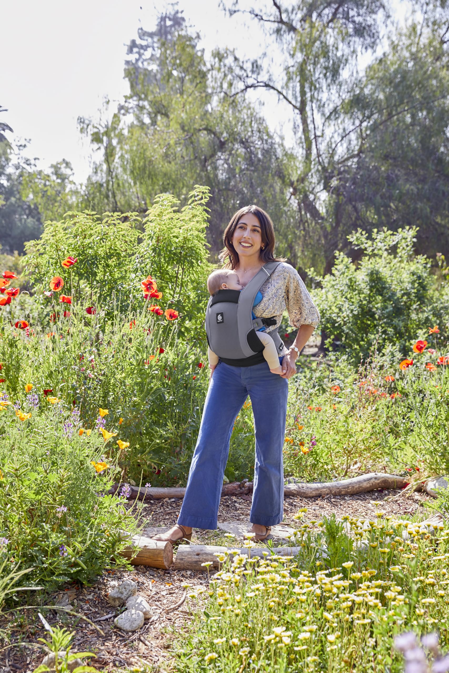 Lightweight and compact, the Away Carrier folds into its own waistband for easy storage on the go. Comfortable for both parent and baby, it offers padded shoulder straps and a supportive waistband. Perfect for travel, quick trips, and everyday use.