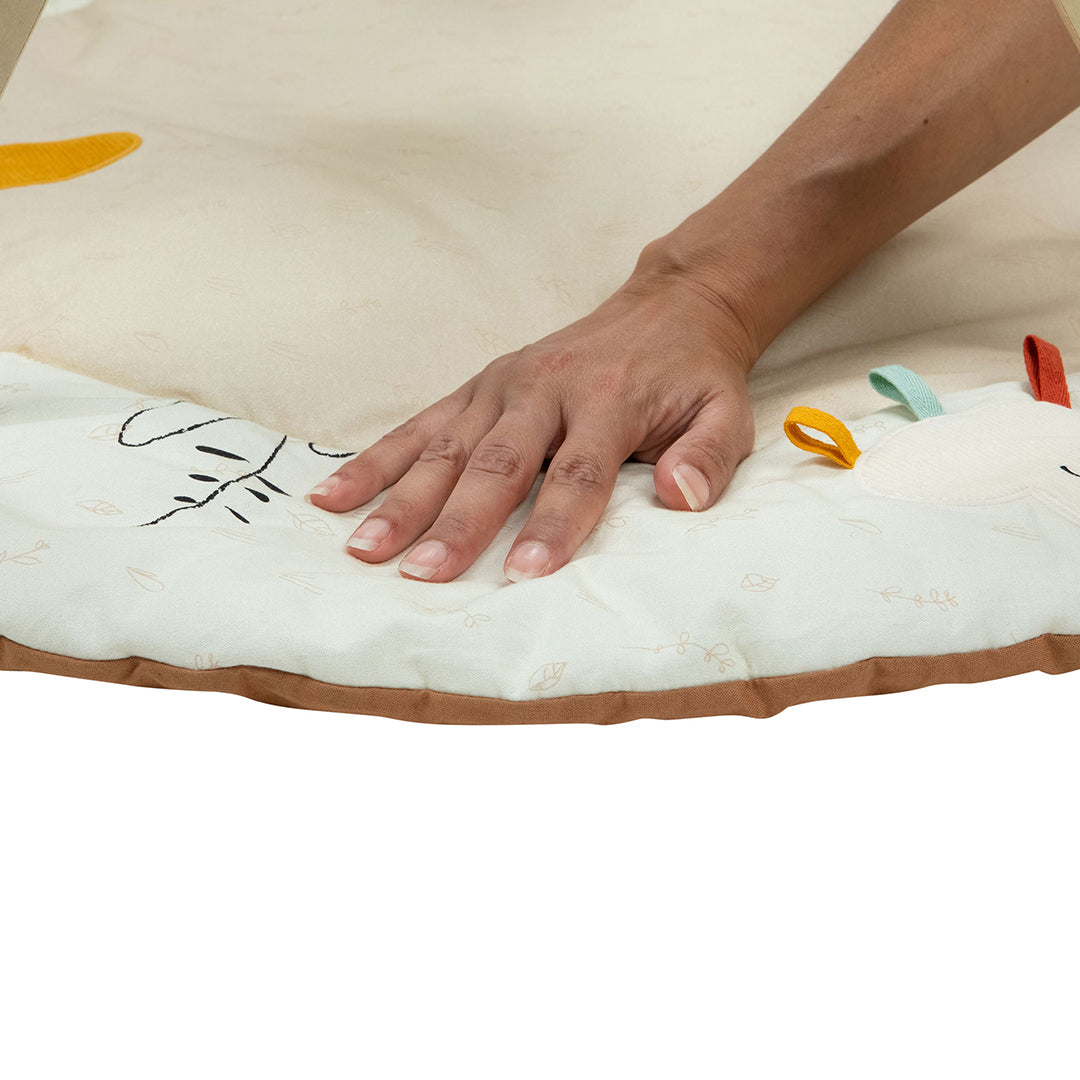 The Gymini can be easily adjusted to moderate the level of stimulation it offers your little one. Its heartwarming, earthy design and neutral colour scheme create a calm playing environment, and you can add or remove toys to increase or decrease the level of stimulation, depending on your baby's developmental stage and individual preferences. The tummy time trainer and 360 degree activity mat encourage you little one to spend more time in tummy time, which helps strengthen neck and shoulder muscles in preparation of the developmental milestones ahead. As babies get older, sit up and gain better control of their hand movements, they can enjoy the Gymini’s toys in more sophisticated ways, playing peek-a-boo, exploring the toys and promoting their cognitive development.
