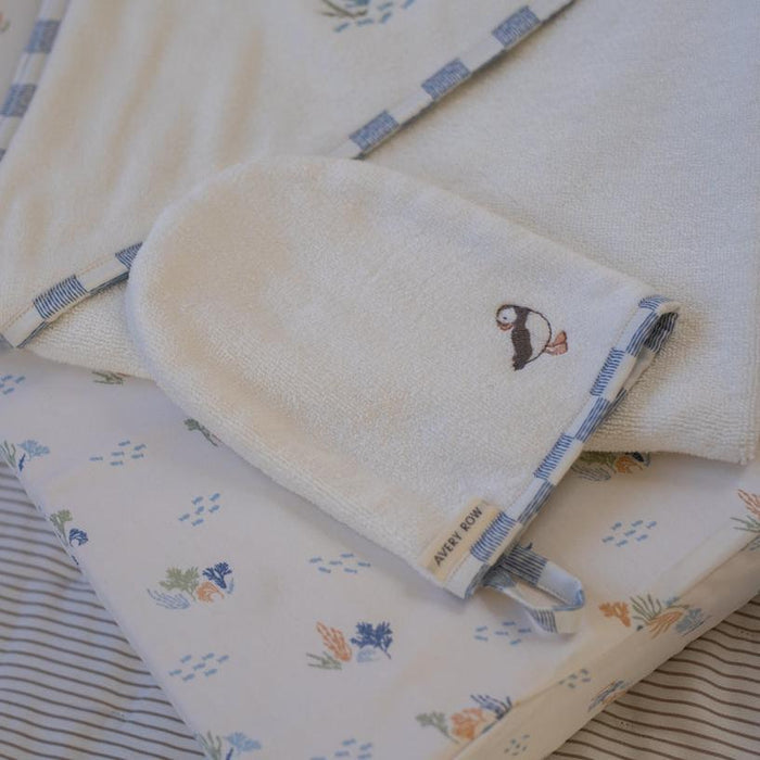 This organic cotton terry towelling bath mitt is super soft on your little one's skin.