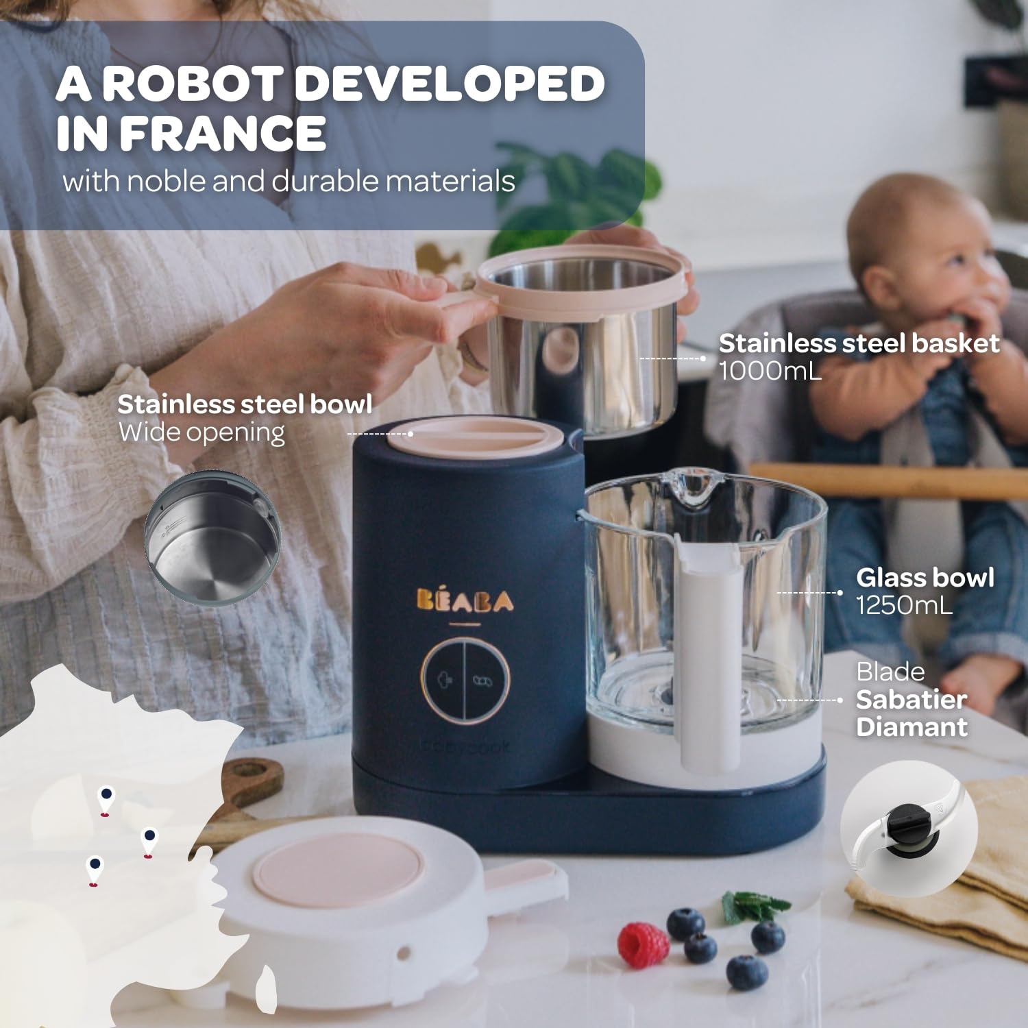 The Babycook Neo from Béaba is a 6-in-1 food processor that blends, chops, steams, defrosts, reheats, and sterilises, also heating bottles up to 150 ml. Gentle steam cooking preserves 40% more nutrients and natural flavours, while a patented Sabatier Diamant blade ensures perfect textures for every stage of a baby’s diet. Its large capacity prepares up to five 120 g portions, is eco-designed to use 50% less water and energy, and pays for itself in under two months. With one-button control, three washable parts, and ergonomic handling, it’s a compact, healthy, and environmentally friendly solution for easy, stress-free meal prep.