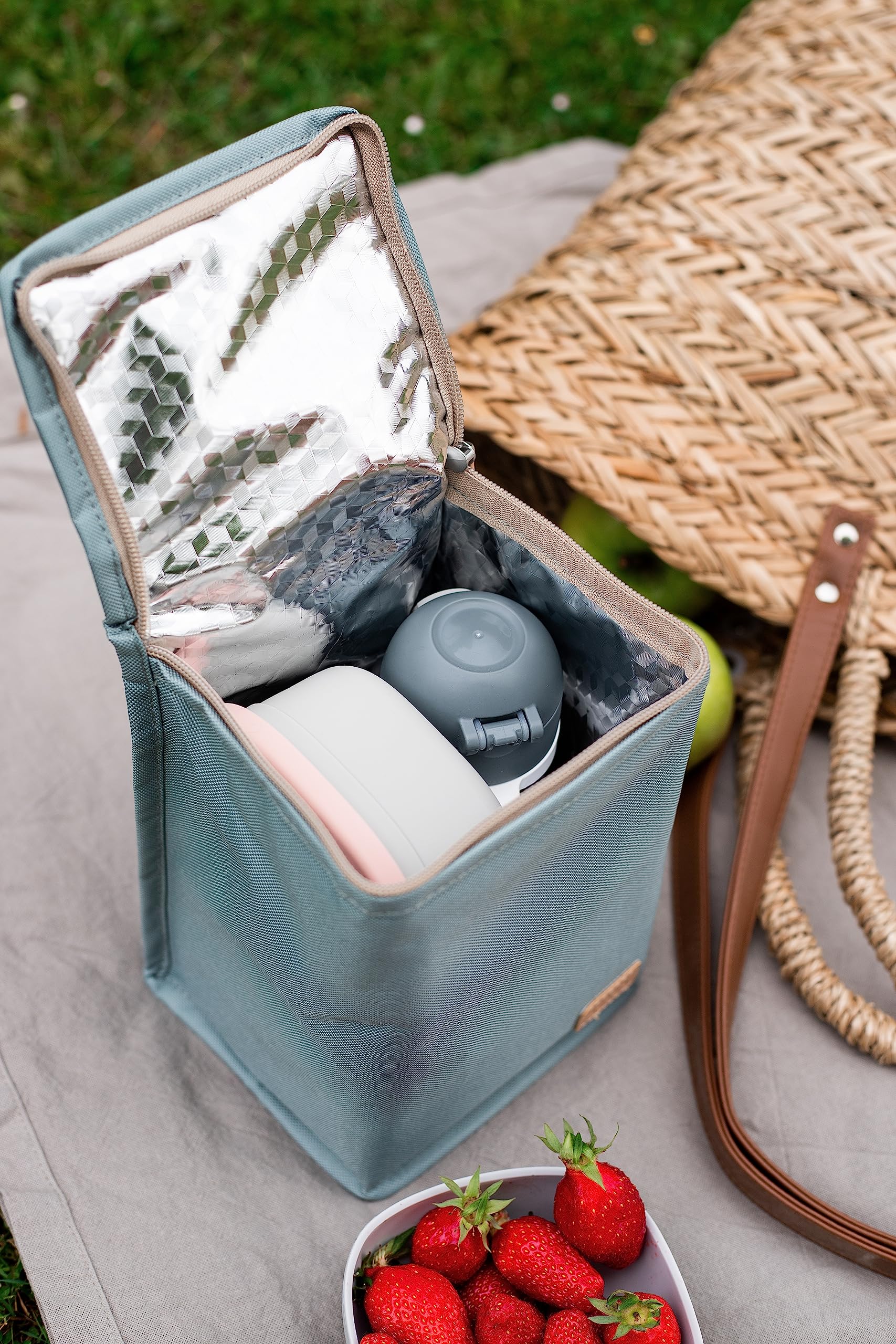 The insulated lunch bag keeps your baby’s food warm or cold, with a convenient carry handle for easy transport. At 22 cm in height, it fits most bottles on the market, while its large capacity holds a complete meal. Made from soft, flexible material, it’s easy to store and saves space.