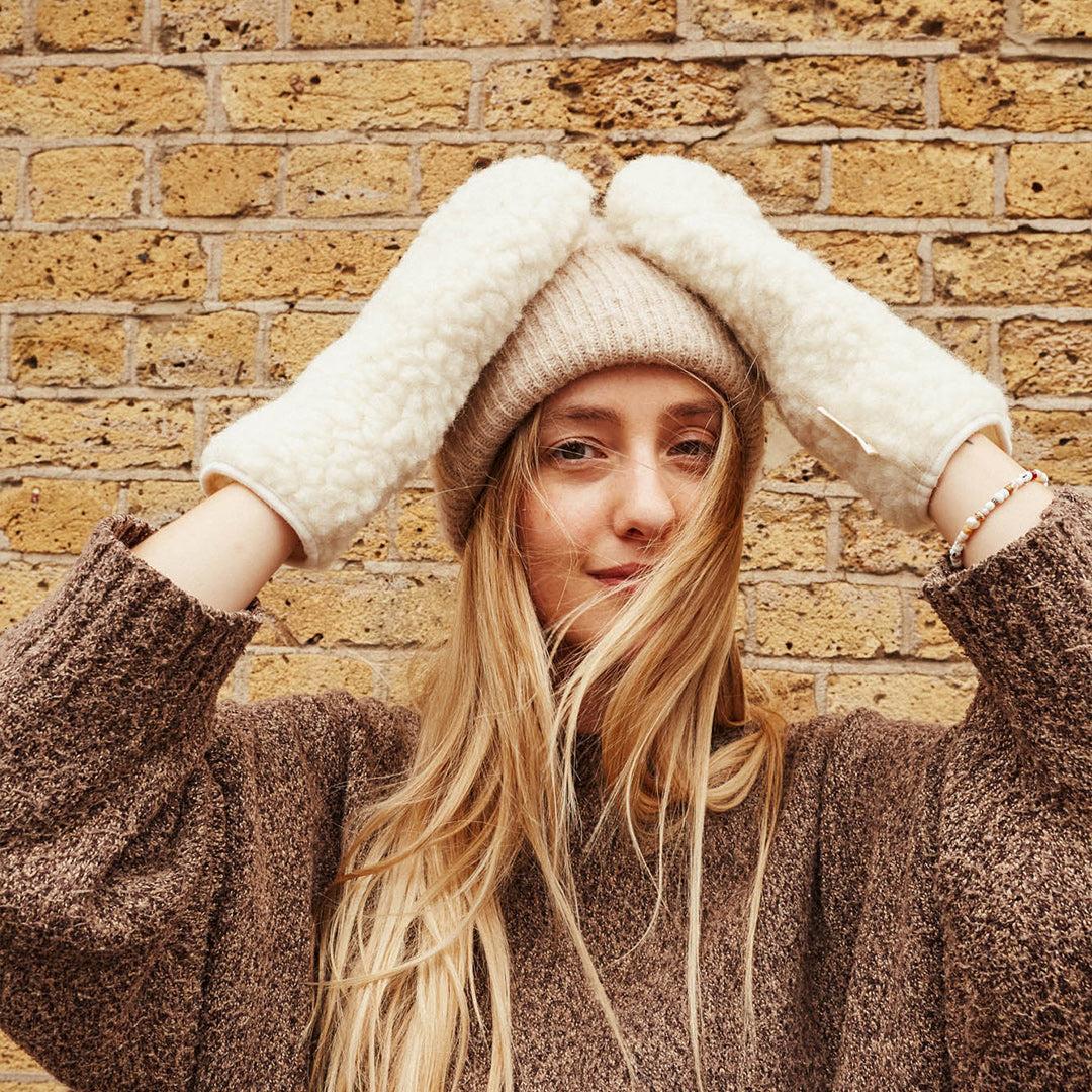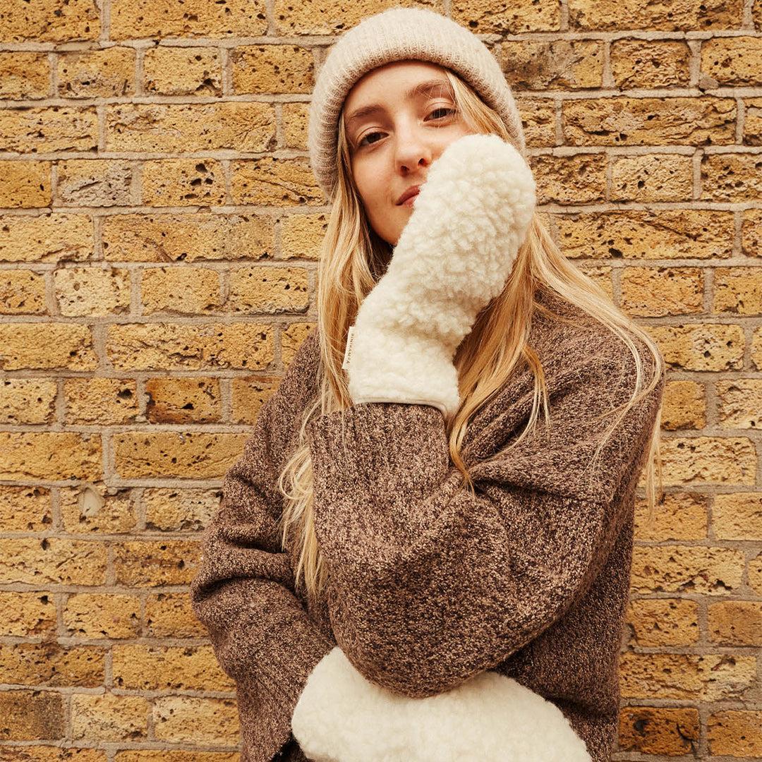 Keep hands snug and stylish with the BINIBAMBA Mama Mittens in Milk, crafted from luxuriously soft natural Merino wool. Designed with clever practicality, these mitts feature a discreet finger opening so you can text, tap, or tie shoelaces without ever taking them off.