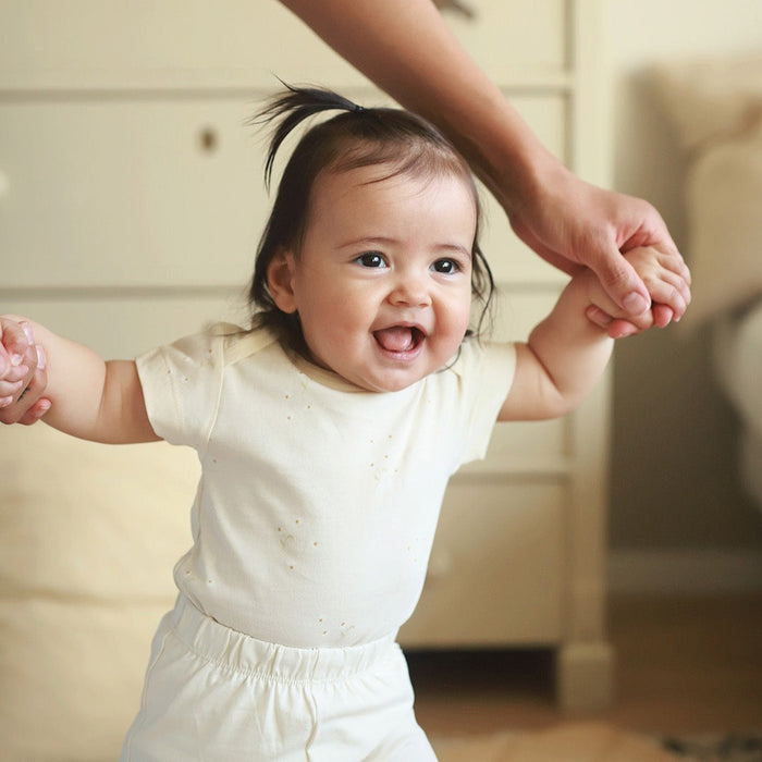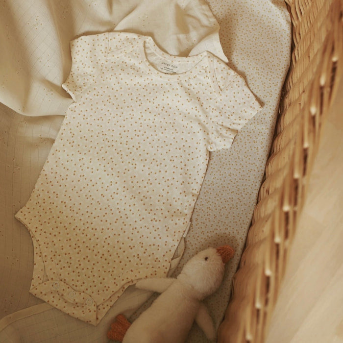 Get your little one ready for the day with this printed jersey bodysuit made from the softest 100% organic cotton jersey to be gentle on your babies skin. This bodysuit is a classic shape with popper fastenings to make nappy changes easy, and an envelope neck for dressing. A stylish essential to your babies wardrobe, and makes the perfect gift.