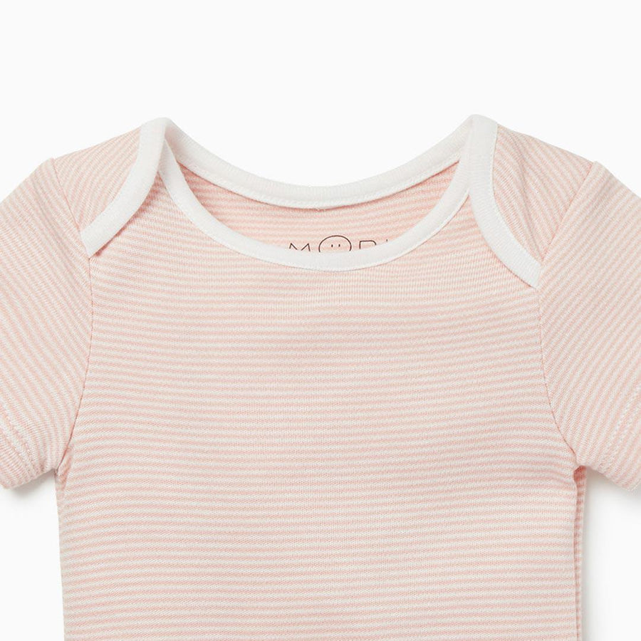 The MORI Ribbed Short Sleeve Bodysuit is a great option for days in the house or as a base layer with a pair of bottoms over the tope. Crafted from the signature fabric, the baby bodysuit is both stylish and practical, and envelope neckline openings make changing your little one much simpler than ever before.