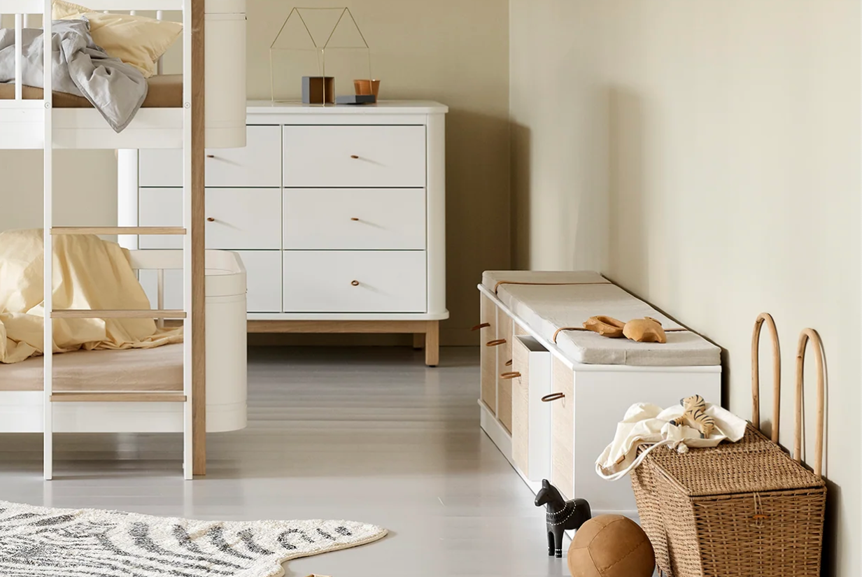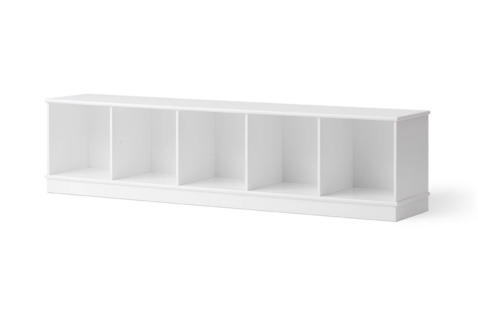 Oliver Furniture Floor Shelving Unit with 5 Spaces is a perfect combination of classic nordic design and practicality. By purchasing a seating pad/cushion it can be transformed into a bench.