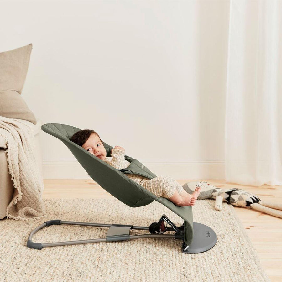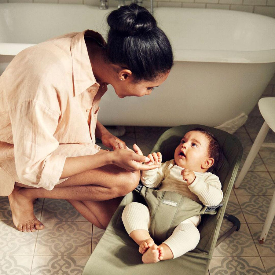 The BabyBjorn Bouncer Bliss is a cosy space for your baby to play and rest in. When baby kicks their legs or waves their arms, the baby bouncer rocks gently. Playing in the baby bouncer also helps your baby develop their motor skills and balance. It can be used from newborn and up to the age of 2 years.