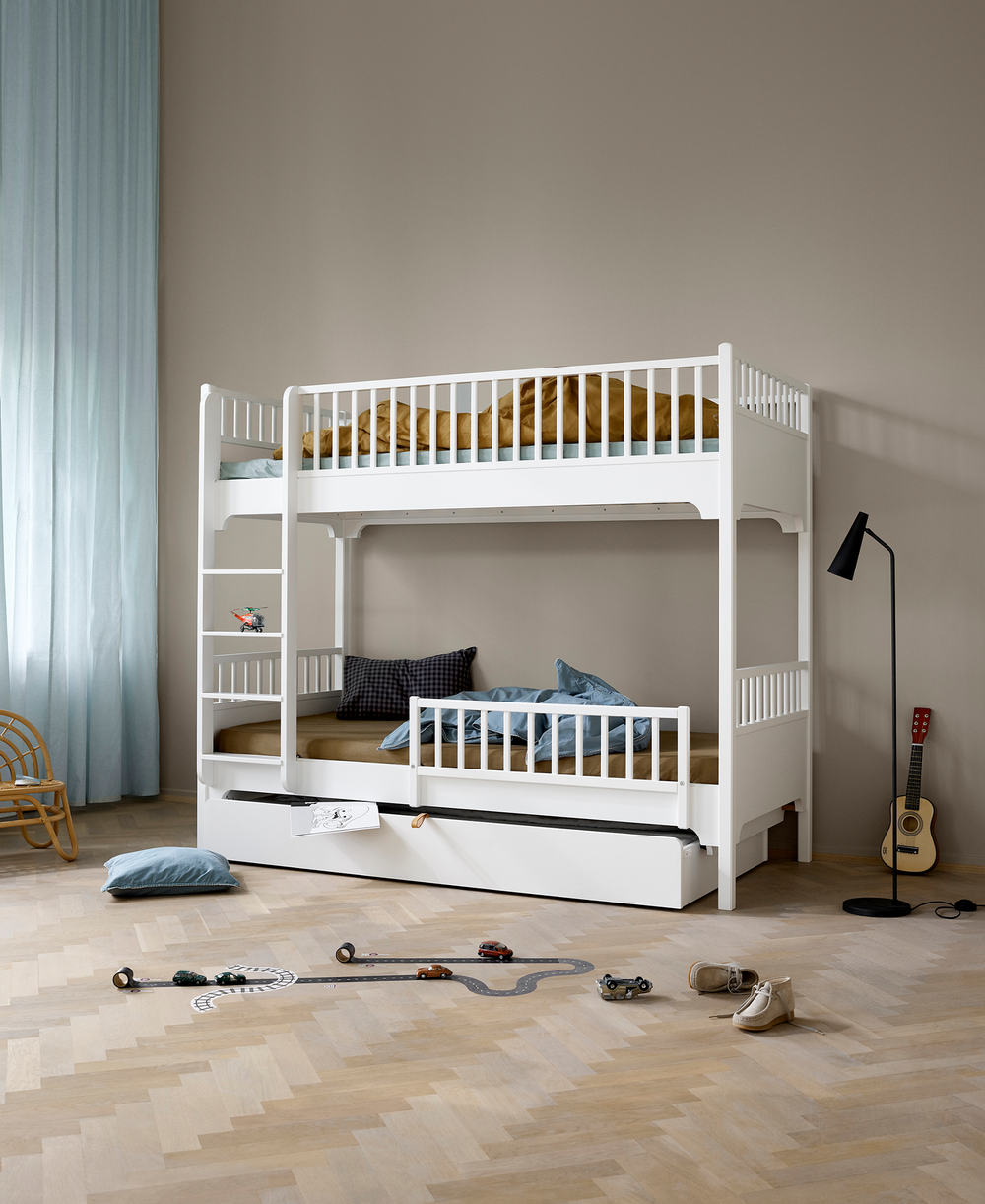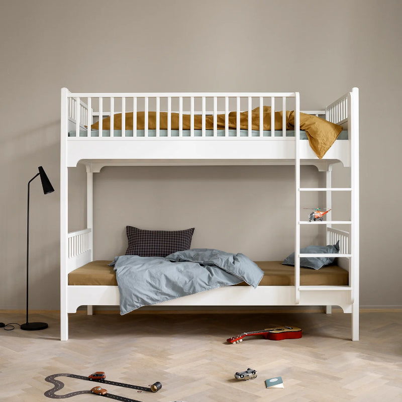 Our Seaside Classic bunk bed is a subtle combination of design and functionality. It has a light and simple expression and a stable and safe construction. You can mount the ladder on both sides of the Seaside Classic bunk bed.