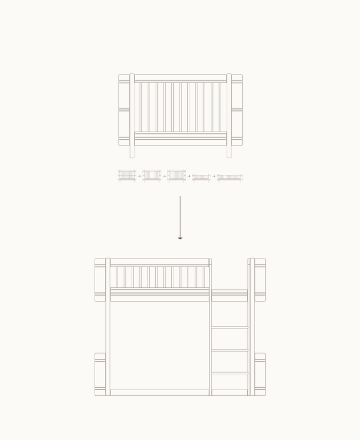 The Wood Mini+ bed series is designed to follow your child's sleeping needs from baby to nine years old. As your needs change - a child outgrows their bed, wants a new one, or perhaps the family expands - the bed can grow with your new needs.