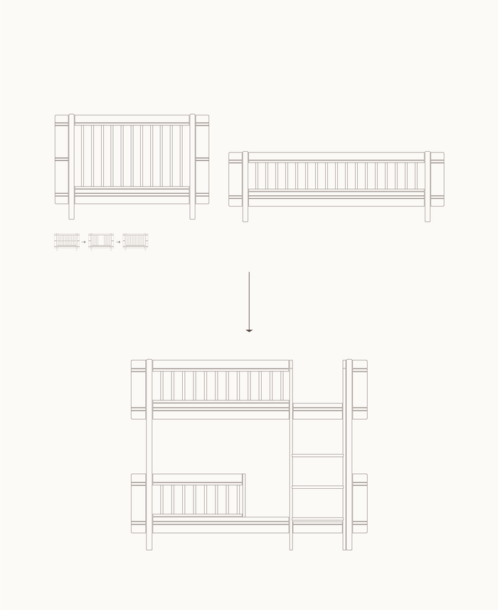 The Wood Mini+ bed series is designed to follow your child's sleeping needs from baby to nine years old. As your needs change - a child outgrows their bed, wants a new one, or perhaps the family expands - the bed can grow with your new needs.