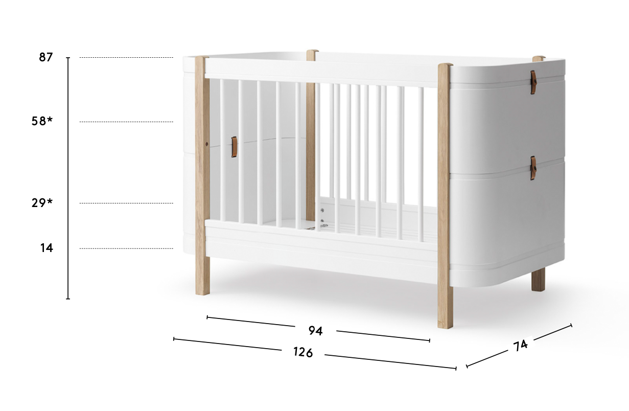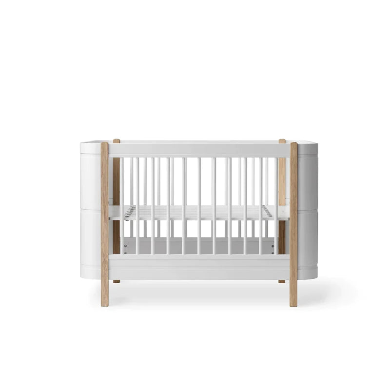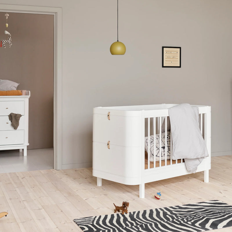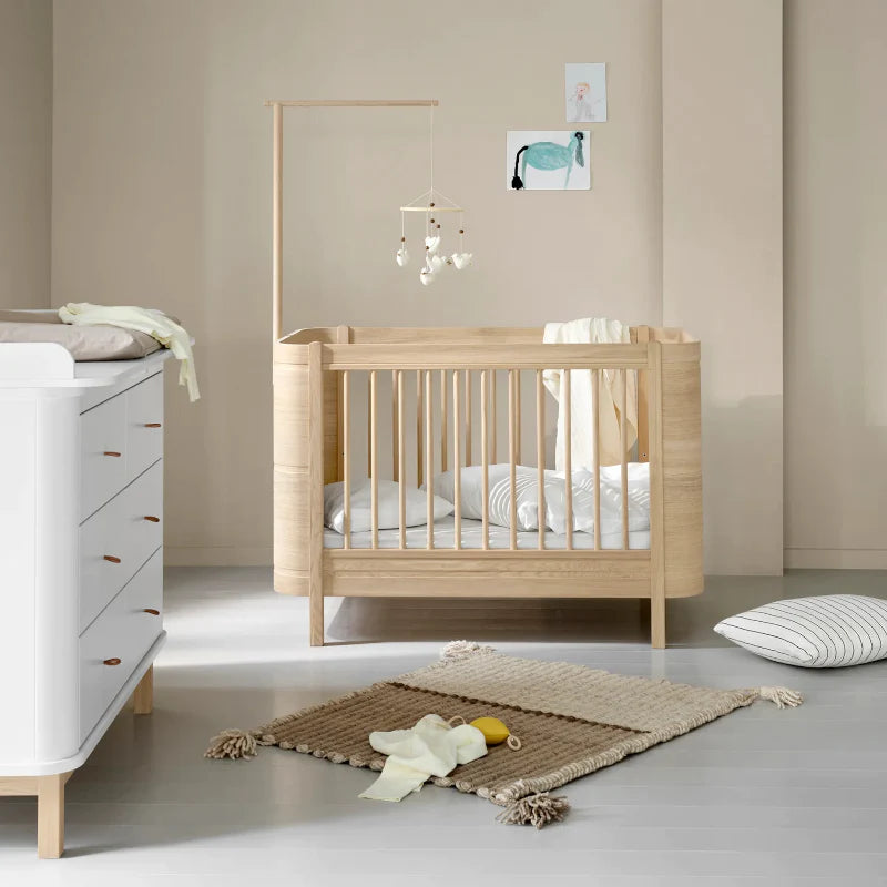 Oliver Furniture Wood Mini Cot (0-3 years) is perfect your modern nursery. This cot has a simple Nordic design with timeless appearance with round soft shapes, giving it a welcoming and soft feel. The Mini+ cot has two mattress heights so it can change as your baby grows and begins to pull themselves up.