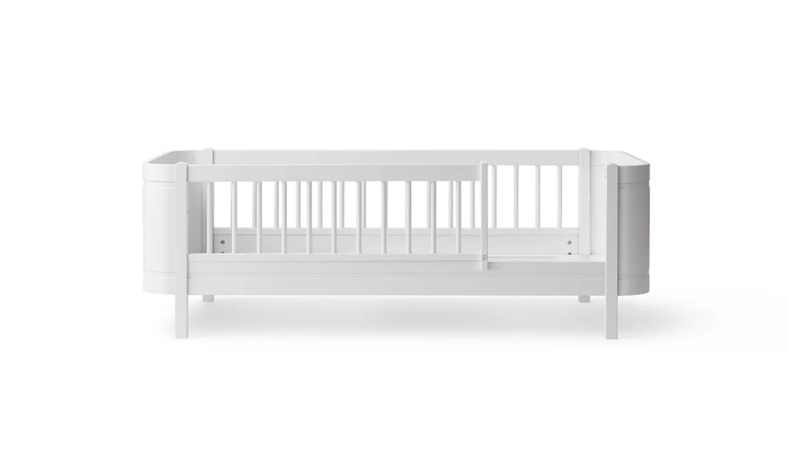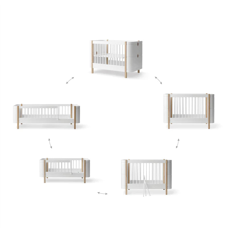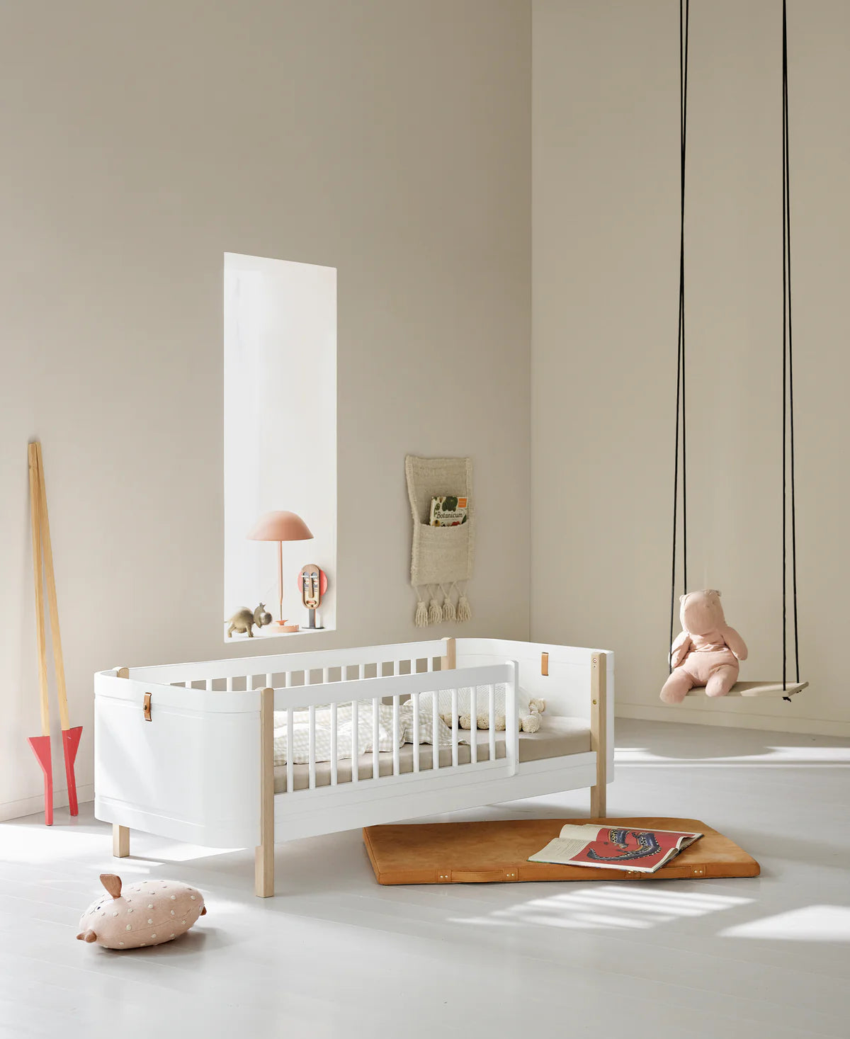 Oliver Furniture Wood Mini+ Cotbed (0-9 years - incl. junior kit) is the perfect evolving cotbed. This cotbed is designed to suit your baby until your child is around 9 years old. Start with Mini+ as a cot and then it can be converted into a small bed with or without a back piece. Later the sides of the small bed can be extended to 166cm to create a bed suitable for a child up to 9 years of age.
