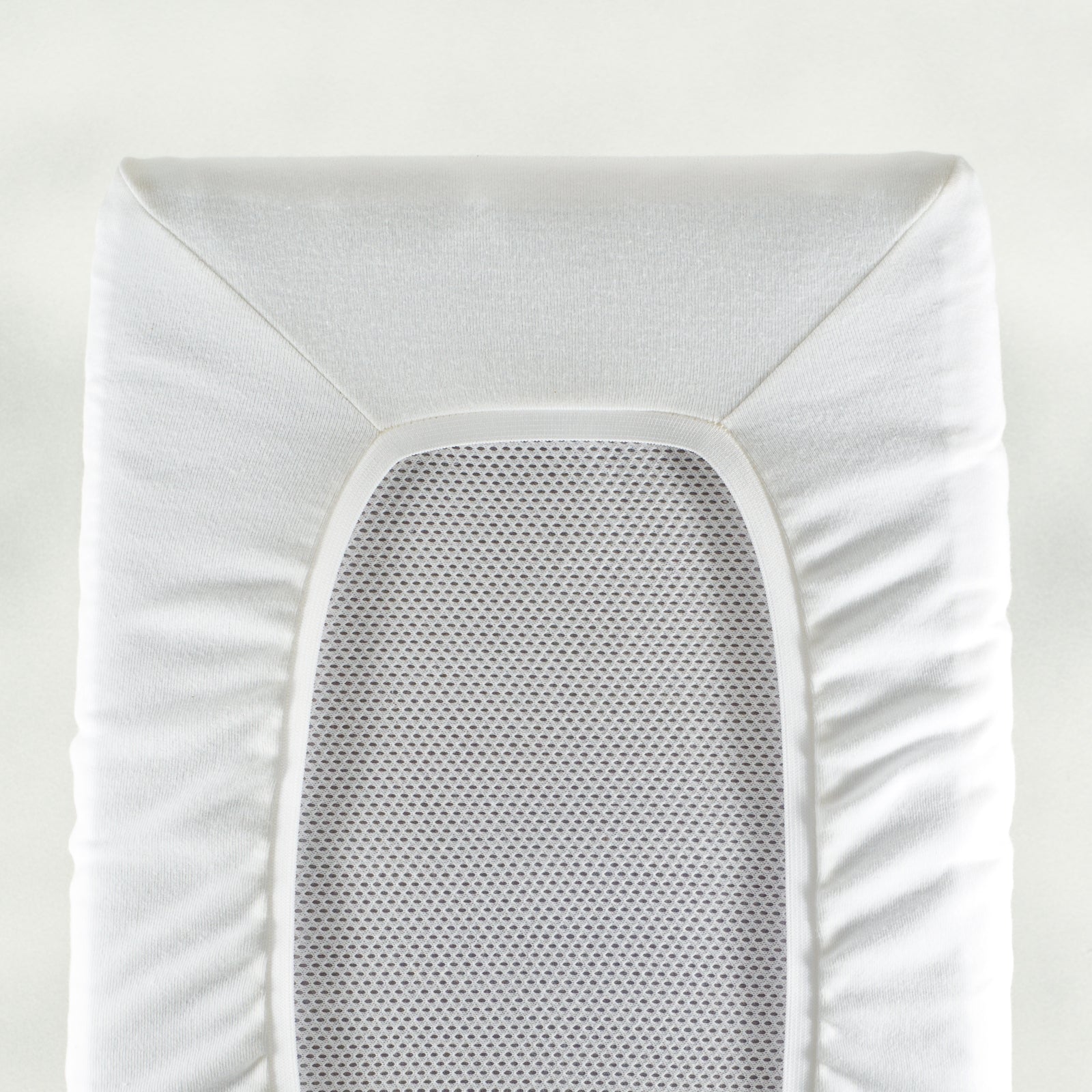 The Original fitted sheet. Made in England from GOTS certified organic cotton. This premium interlock jersey sheet is soft on baby’s skin, and has been designed to last, wash after wash. It is carefully tailored to fit the mattress, for a comfortable nights sleep. The deep corners and elastic edge keep it firmly attached to the mattress, without slipping or rucking.