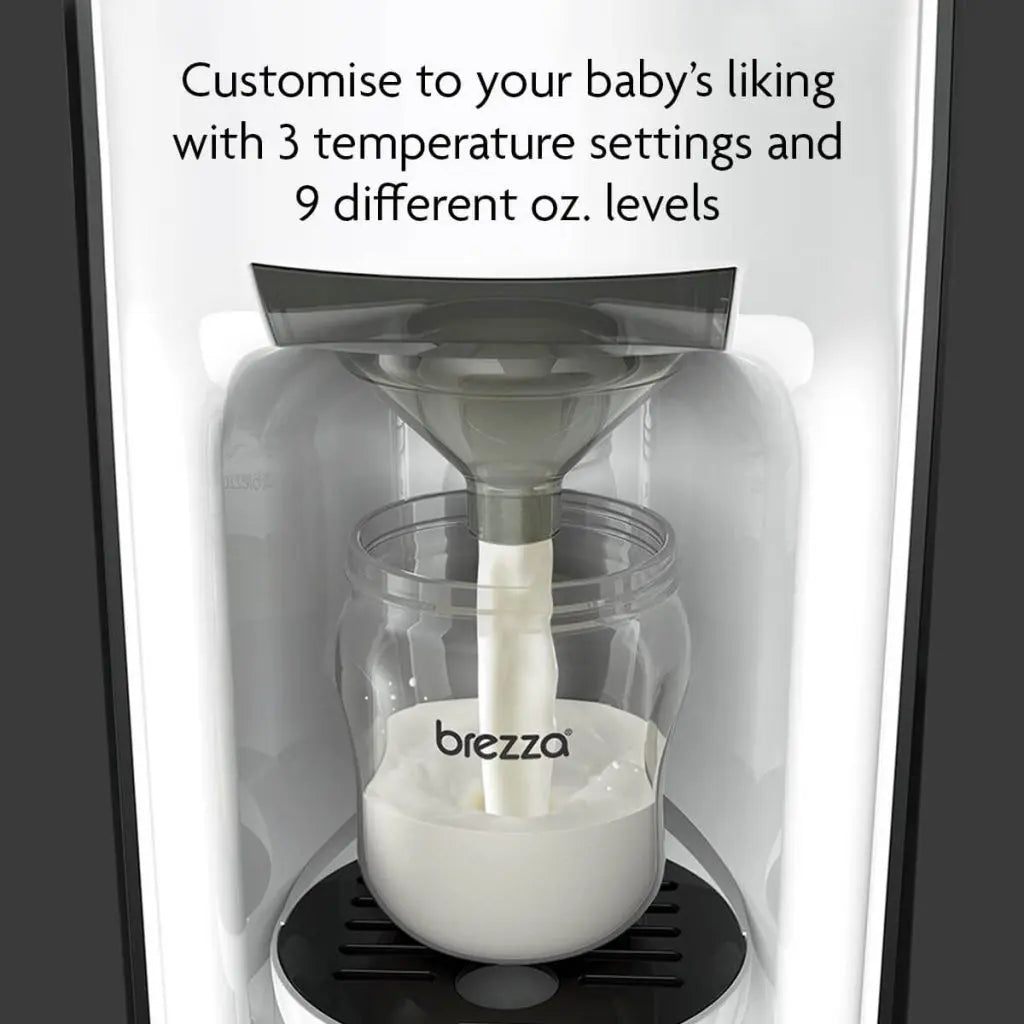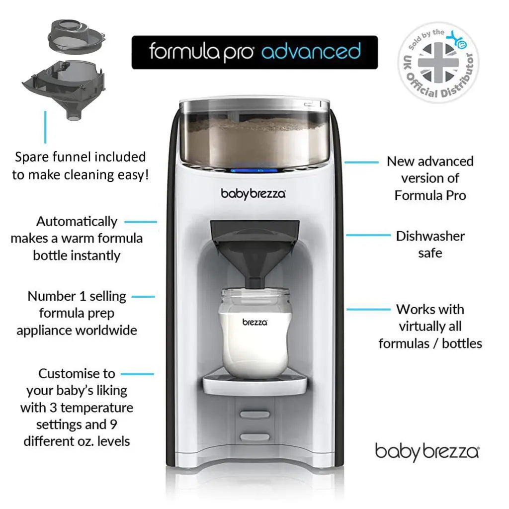 The Baby Brezza Formula Pro Advanced Formula Dispenser is the most advanced way to automatically make a warm, formula bottle instantly. The Formula Pro Advanced mixes formula and water to the perfect consistency without any measuring, mixing, waiting or fuss! You can customise your baby’s bottle with 3 temperature settings and dispensing 60-300 ml of formula or water only. Works with virtually all formula brands and all bottle types. BPA-FREE.