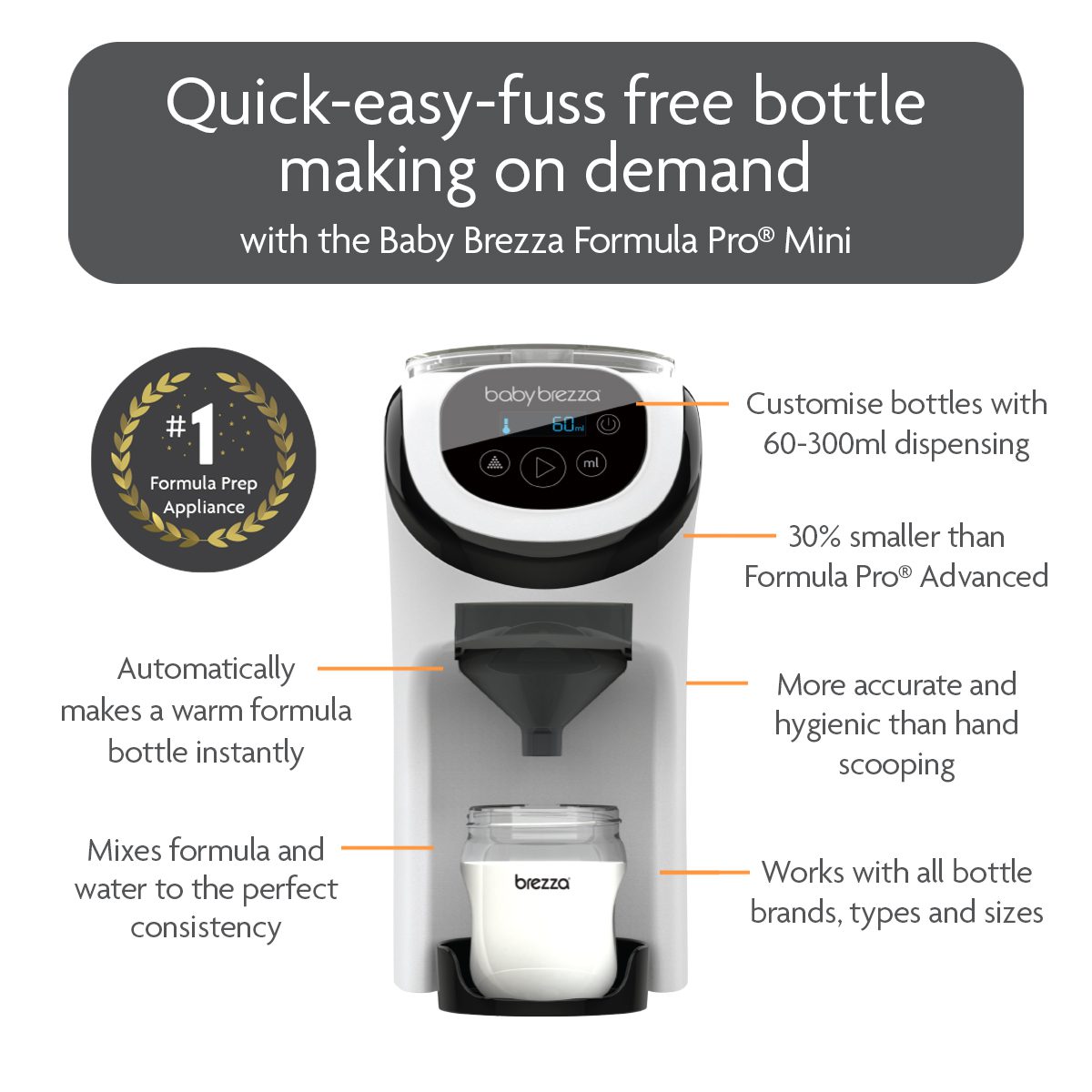 The first compact baby formula maker automatically makes a warm formula bottle instantly with the same patented mixing technology as the #1 selling Formula Pro Advanced.