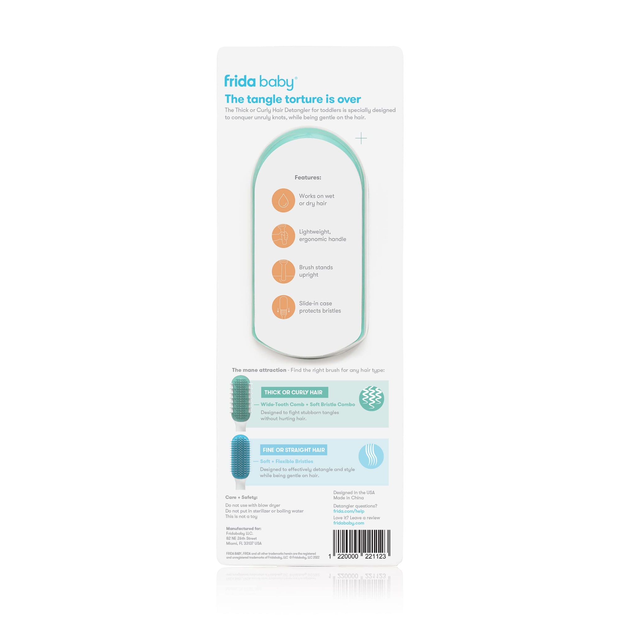 The Thick or Curly Hair Detangler brush helps manage your kid’s knots, without hurting their sensitive scalp. Designed specifically for thicker hair, the Hair Detangler brush comes equipped with strong comb-like bristles to get through the tougher tangles, along with softer bristles that glide through hair without causing damage or breakage (or tears!). Its protective storage cap keeps every bristle in place even when stuffed in your bag for on-the-go hair management.