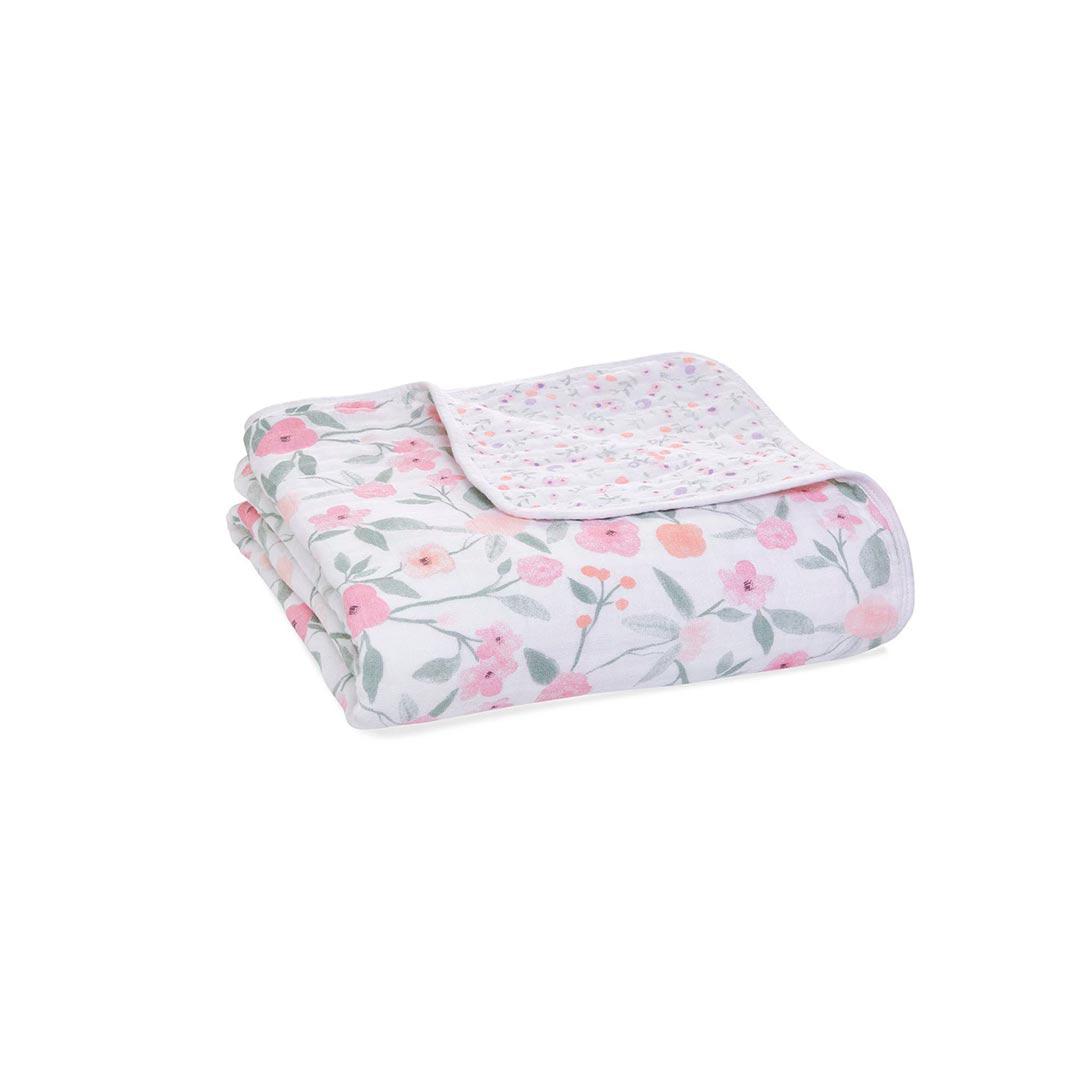 The aden + anais Muslin Dream blanket features four layers of 100% cotton muslin and is nothing less than dreamy. The softest baby blanket yet, the aden + anais dream blanket's uses go beyond cuddling, as it also makes a comfy surface to lay your little one on for tummy time, story time, and much more.