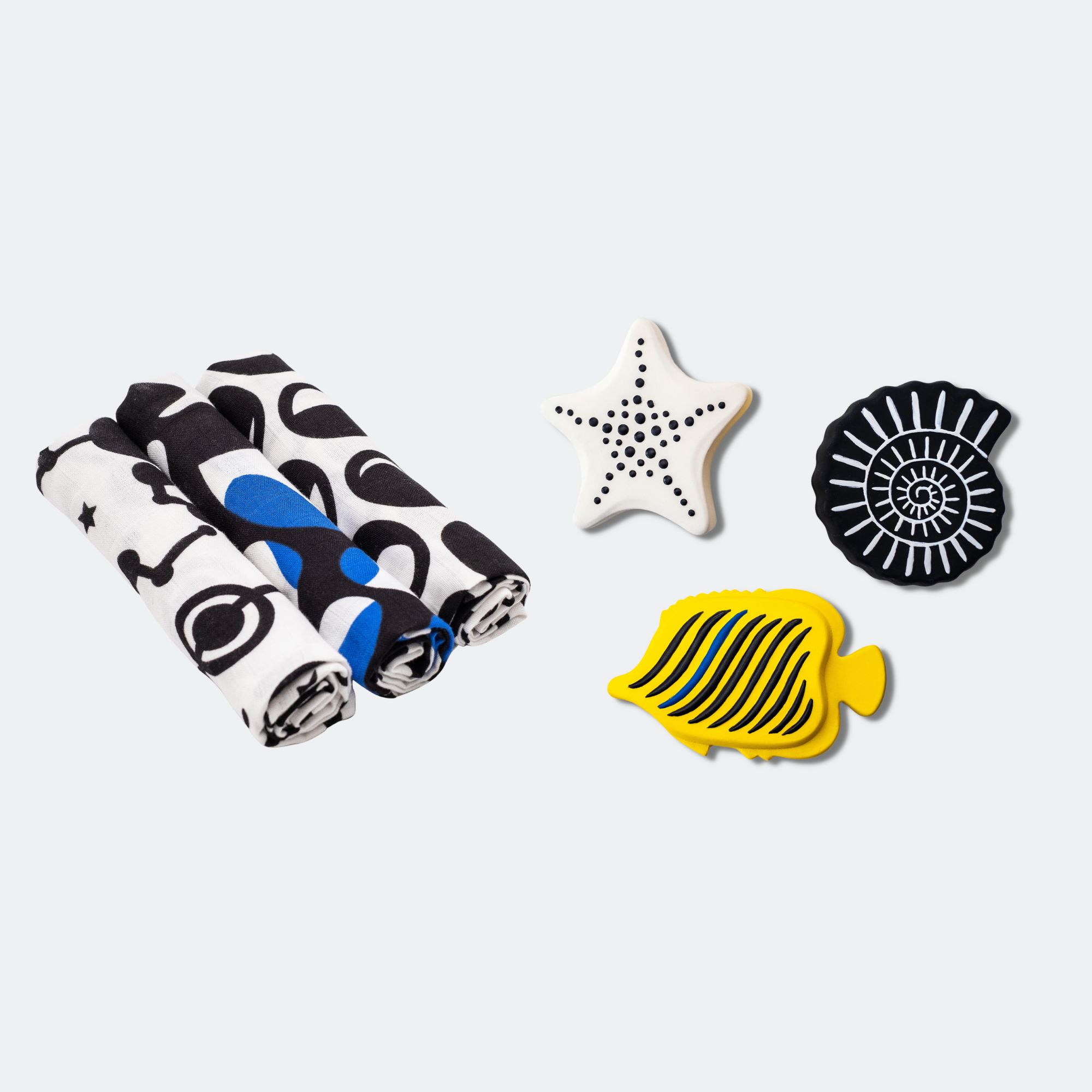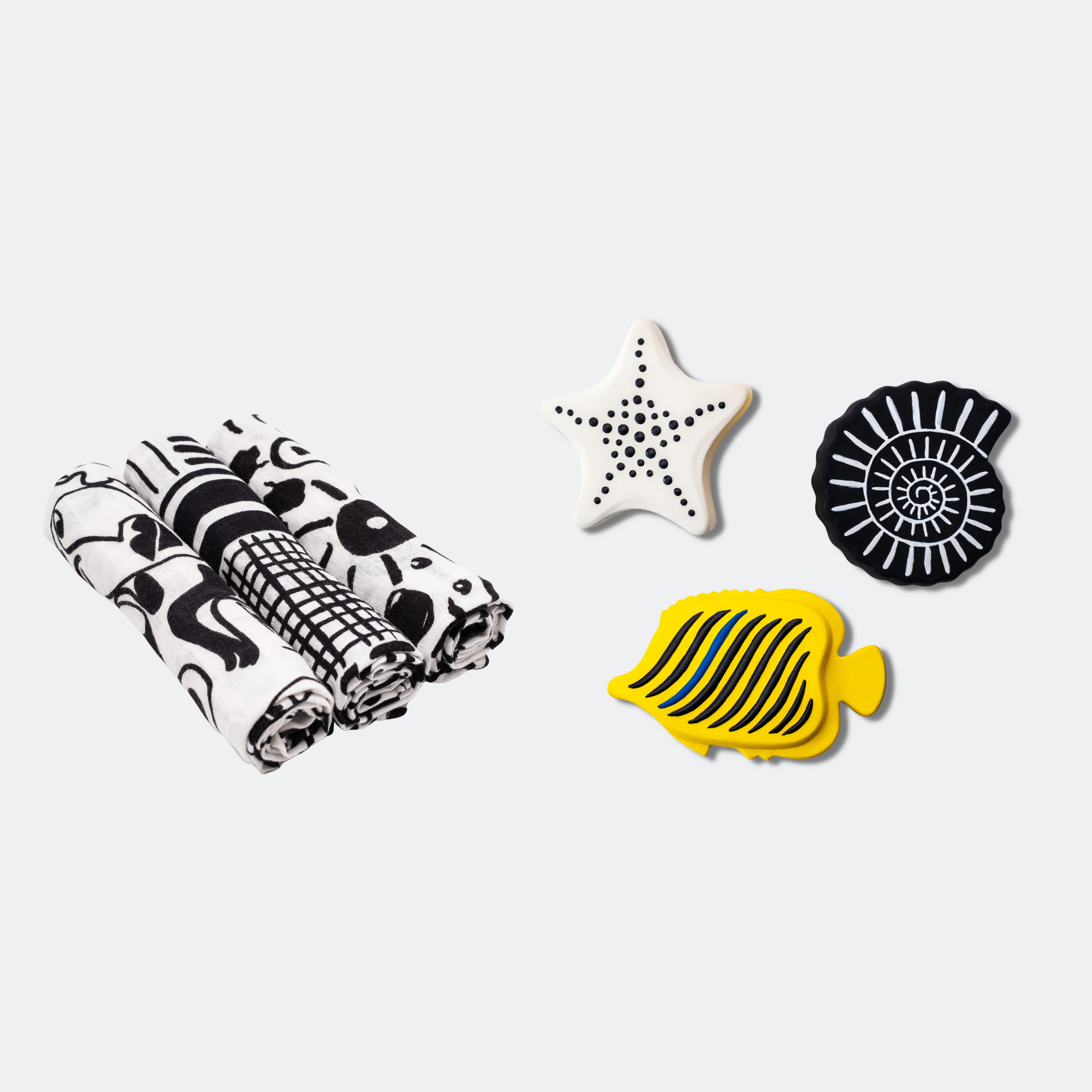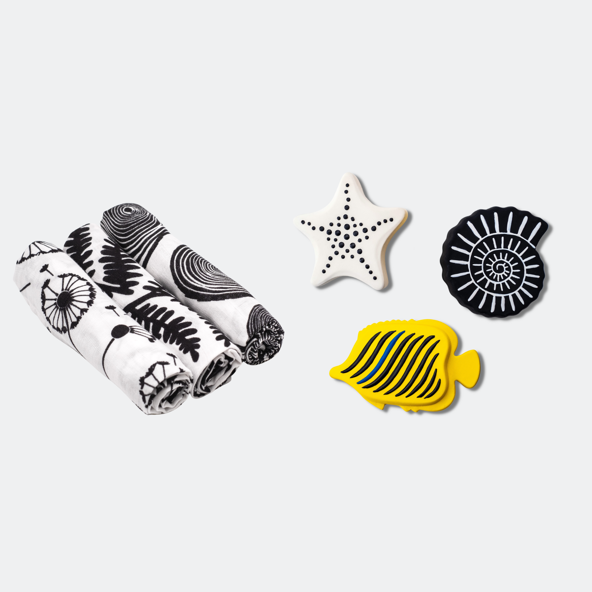 The perfect day to evening combo - our award winning muslin 3-pack combined with our new sensory bath toys - keeping you covered all around the house, or out and about. The natural rubber bath toys are perfect for supporting a calm and happy bathtime and also great to chew anywhere. Whilst our bestselling muslin 3-packs are perfect for feeding, travelling and playing - whenever you need a practical muslin or a sensory aid!