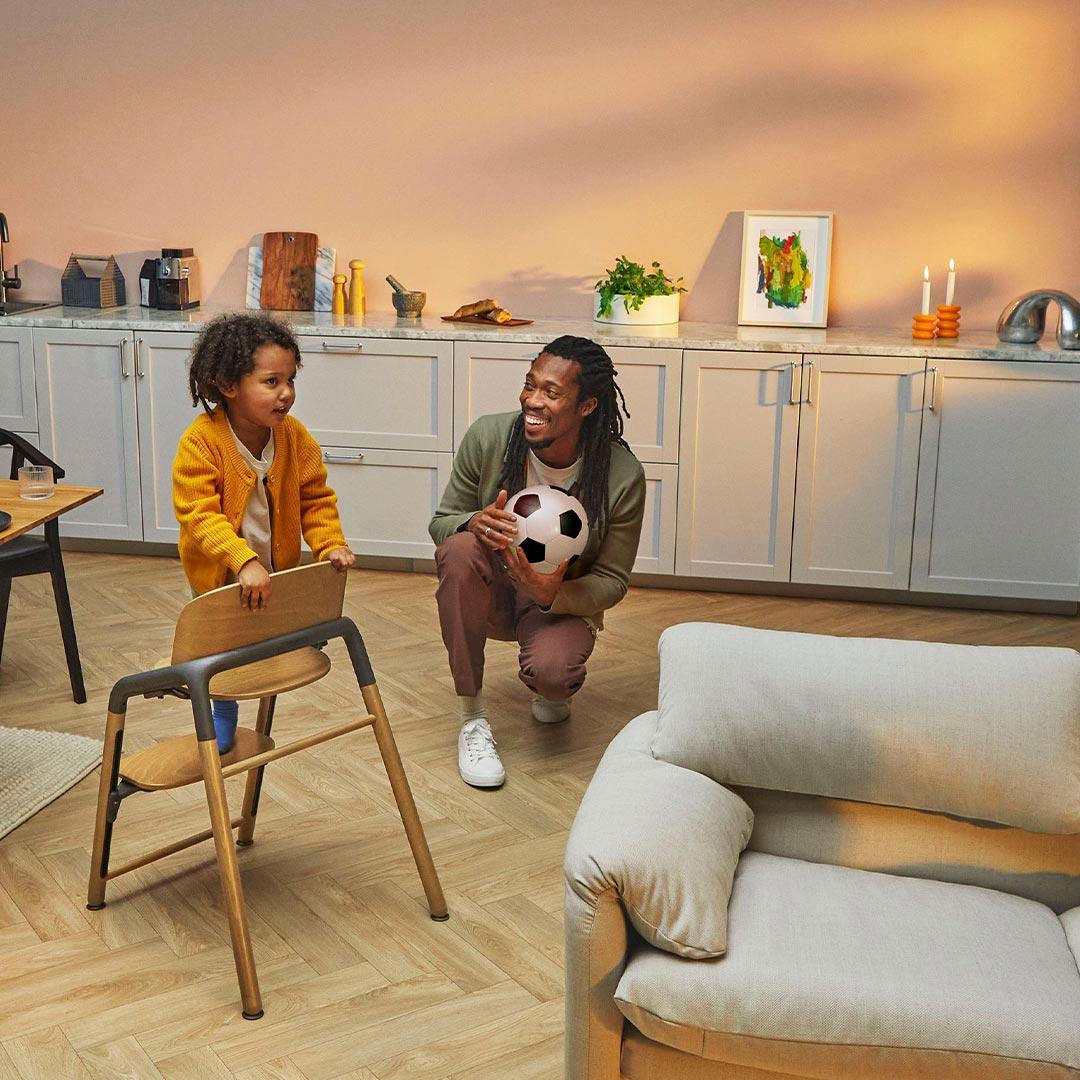 The Bugaboo Giraffe Highchair Baby Bundle is the ultimate mealtime companion, designed to grow with your child. This versatile bundle includes a highchair, baby set, cushions and tray, making it perfect for every stage of your little one’s development. With its innovative design, the Bugaboo Giraffe is easy to adjust and does not require any tools, offering flexible seating solutions for infants to toddlers. The Baby Set provides your little one with a safe and comfortable place to start weaning, with a five-point safety harness for peace of mind, and the tray encourages independence and minimises spills. The Baby Set and Tray are made from bio-based materials and are dishwasher-safe, making clean-up a breeze. The soft wood finish and neutral fabrics will work well in any home and for added convenience, the Giraffe is lightweight and portable, making it easy to move around your home.