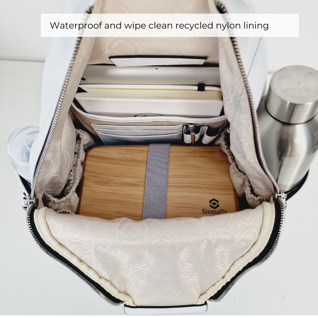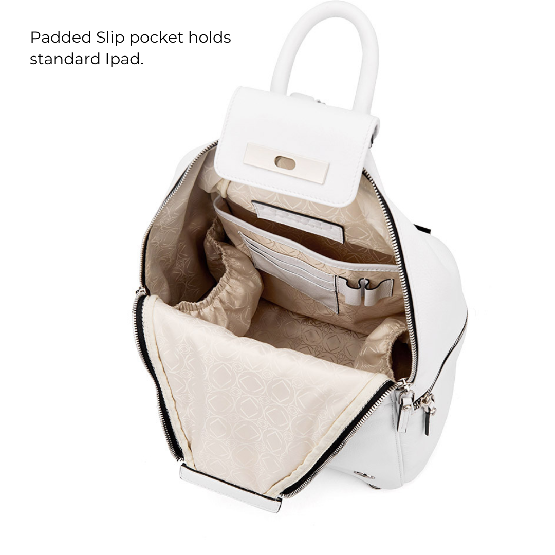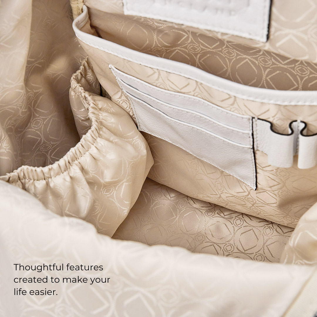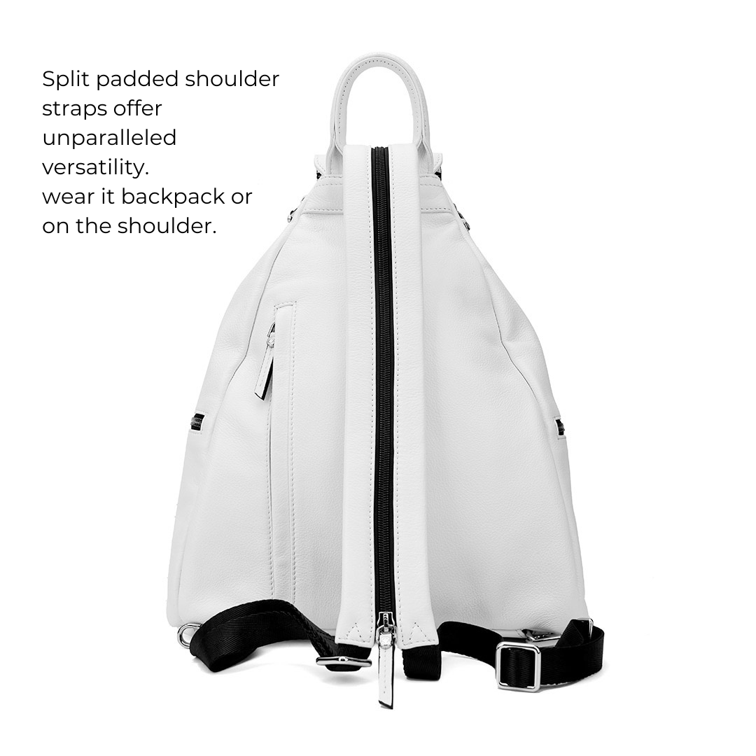 Stunning full grain white leather fused with ultimate versatility, this leather bag can be worn as a backpack, across the body and reversible too! Made in limited edition numbers of only 50 pieces, each order will be delivered with a unique verification card letting you know which number of 50 you have been lucky enough to get. This new design has space for an Ipad, umbrella, water bottle and all your daily essentials.
