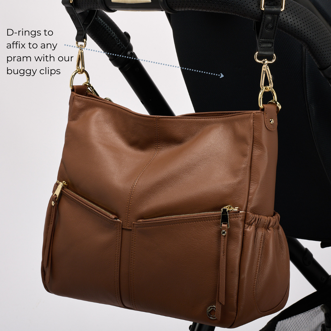 • Elasticated Pockets for Nappies, Wipes, Charging Cables, Toiletries