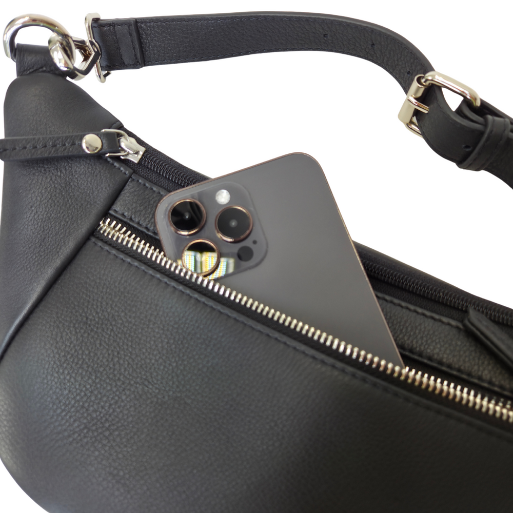Sleek, compact, and effortlessly stylish, the Murphy Leather Bum Bag is built for hands free, fuss free days. Featuring smart organisation, multiple zip pockets, and a versatile strap, it can be worn around the waist, across the body or under your arm. Keeping your essentials secure and within easy reach—perfect for life on the go.