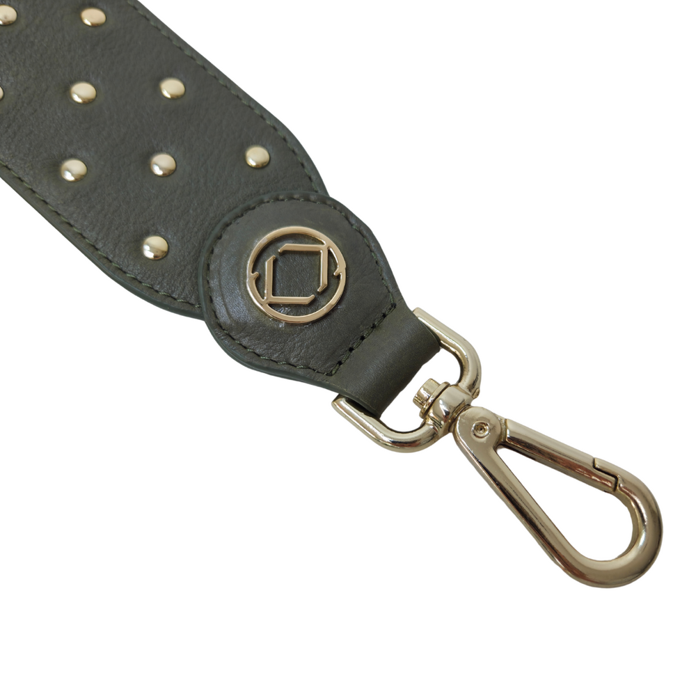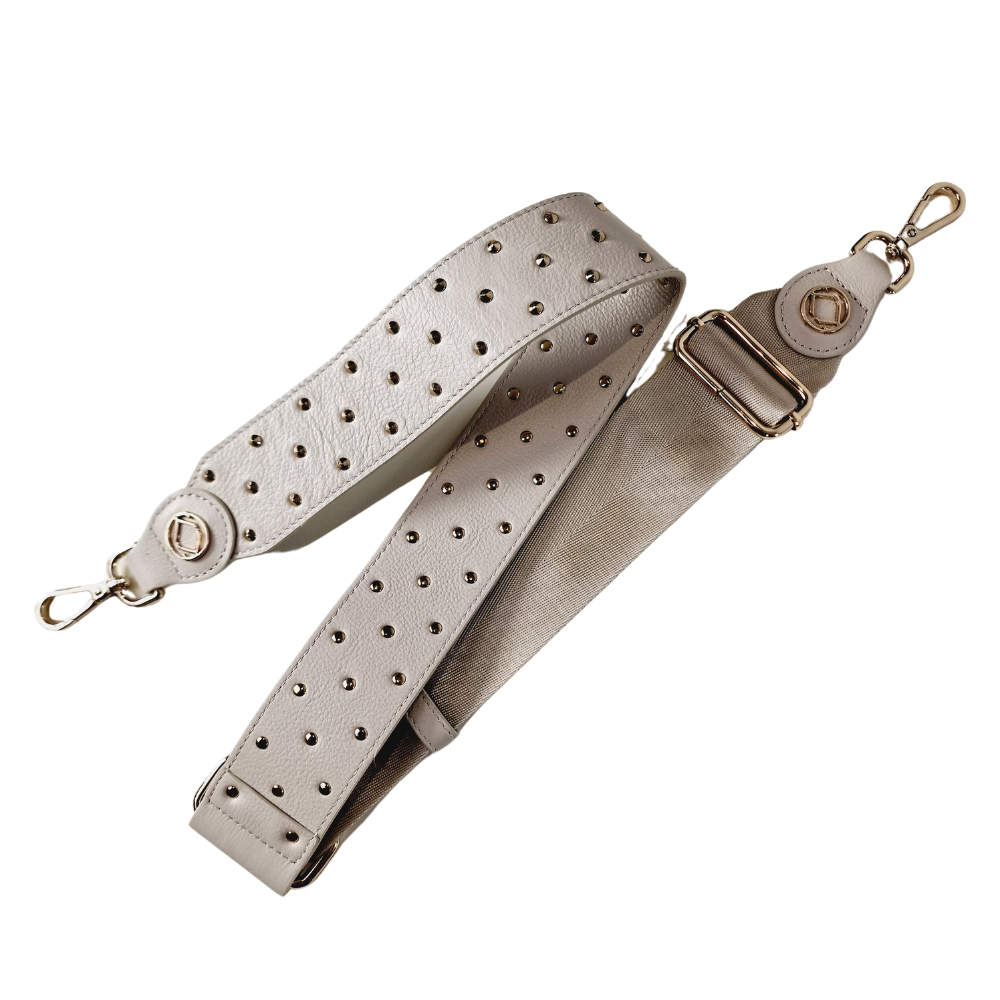 Simply unclip the existing leather strap and replace it with the Stevie - named after the iconic Stevie Harry, for maximum comfort, and head-turning style. Featuring mixed-coloured metal hardware for the pyramid studs and light gold hardware for the pin stud and leather trims.