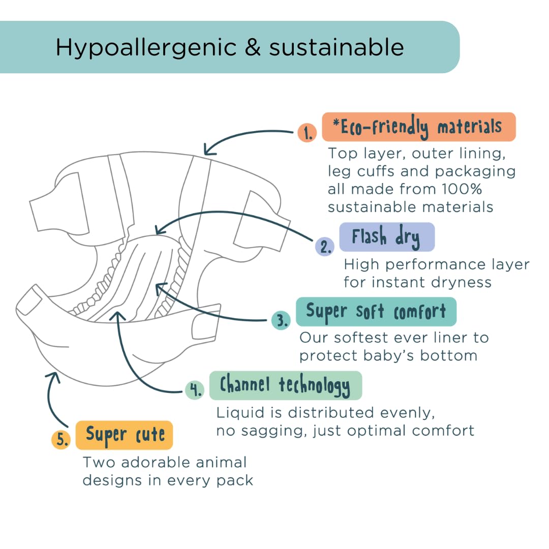 With the NEW flash dry layer and channel technology Kit & Kin Diapers offer for up to 12-hour leak protection.
