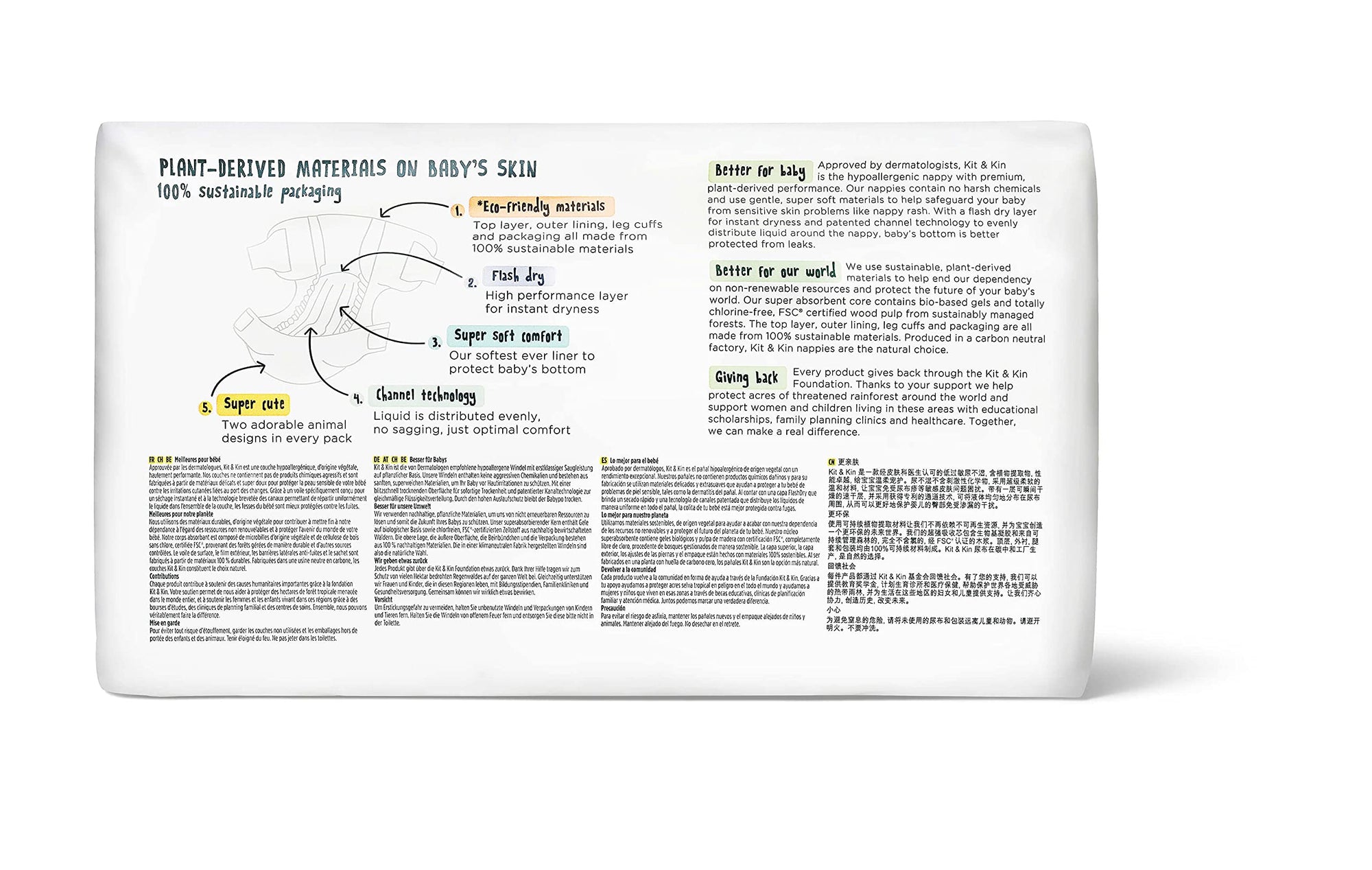 Kit & Kin Diapers are featuring a part natural high-tech absorbent core that uses significantly fewer chemicals and chlorine-free fluff pulp to protect sensitive skin from eczema and diaper rash while utilizing sustainable materials to reduce our dependency on non-renewable resources.