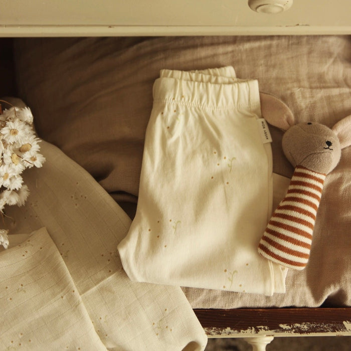 Get your little one ready for the day with these printed jersey leggings, featuring our delicate Wild Chamomile print as part of the Chamomile collection. Made from the softest 100% organic cotton jersey to be gentle on your babies skin. Avery Row's leggings are a classic shape with an elasticated waistband to make dressing easy. A stylish essential to your babies wardrobe, and makes the perfect gift.