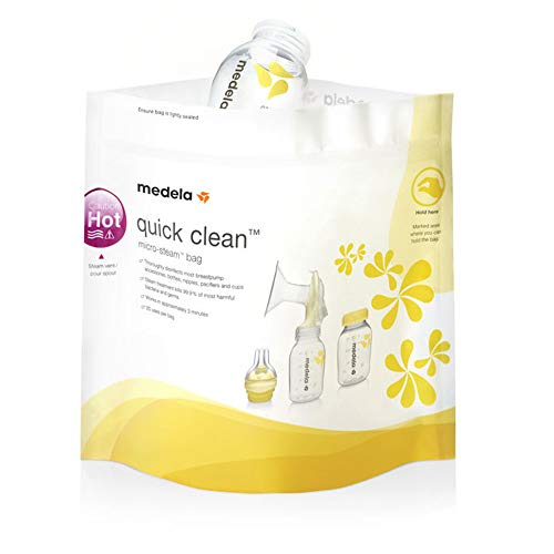 Quick clean microwave bags are a handy way to sanitise pumping equipment and breastfeeding accessories quickly and safely. With Medela Quick Clean Microwave Bags you can disinfect breastfeeding accessories in around three minutes – it is faster and easier than boiling. This eliminates 99.9% of the most harmful bacteria and germs.