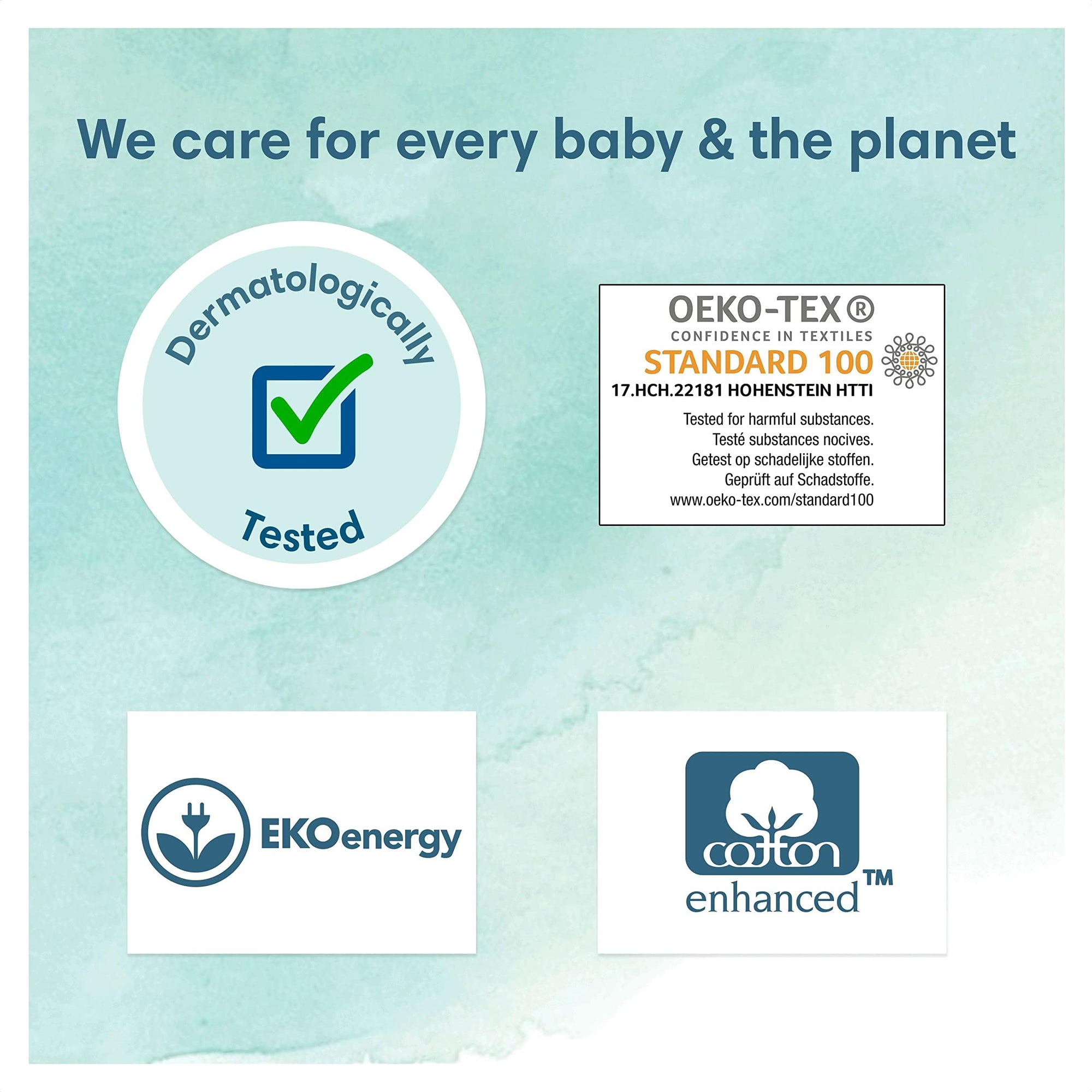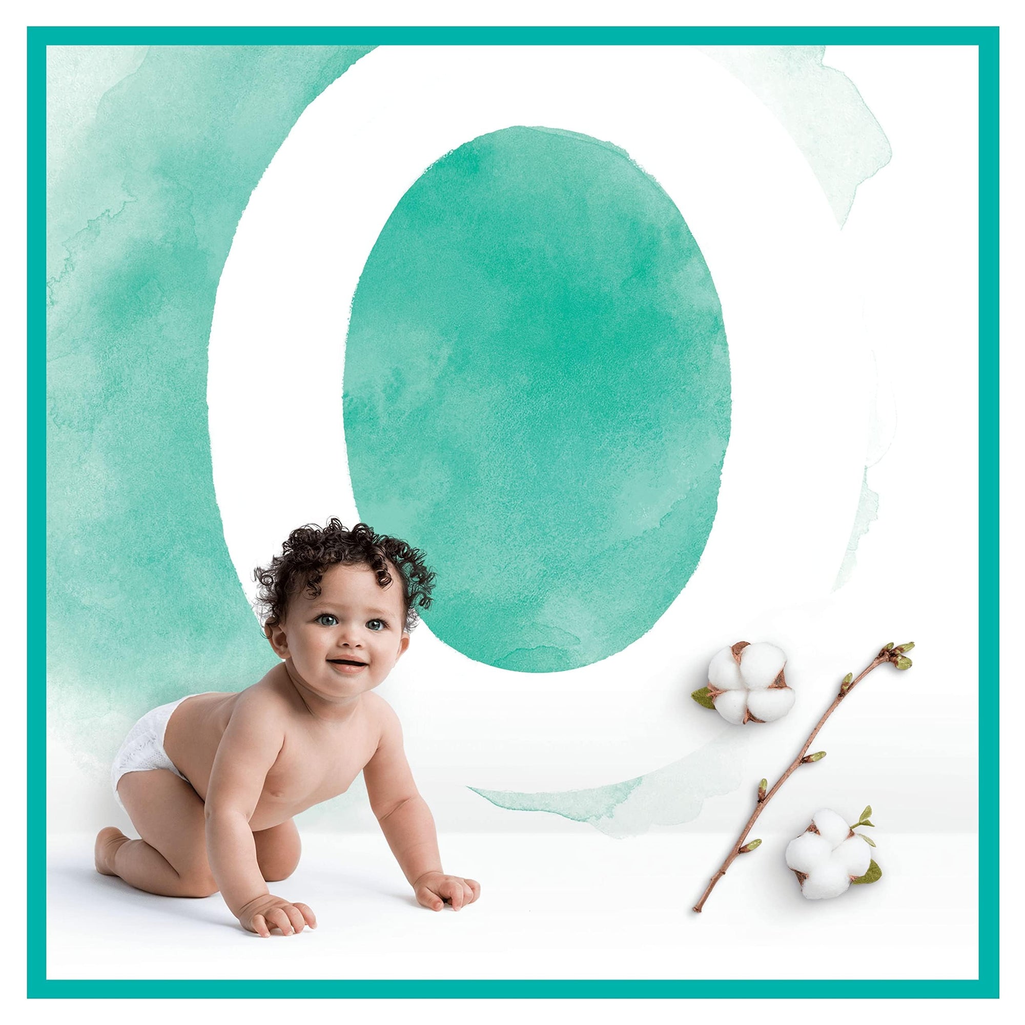 Gentle skin protection. Pampers Harmonie nappies are crafted with a soft absorbent topsheet with 50% plant based ingredients and a soft outer cover with 15% premium cotton. They’re dermatologically tested and gentle on your baby’s skin. They contain 0% perfume, 0% lotion, are free of the EU 26 allergens and guarantee up to 12h Pampers dryness, for the quality reassurance every parent needs. They have cute prints and are equipped with the handy Pampers wetness indicator: you and your baby will absolutely love them! Pampers Harmonie are made with responsibly sourced cellulose and are certified Standard 100 by Oeko-Tex. Want to know more about the components Pampers uses? Visit pampers.co.uk