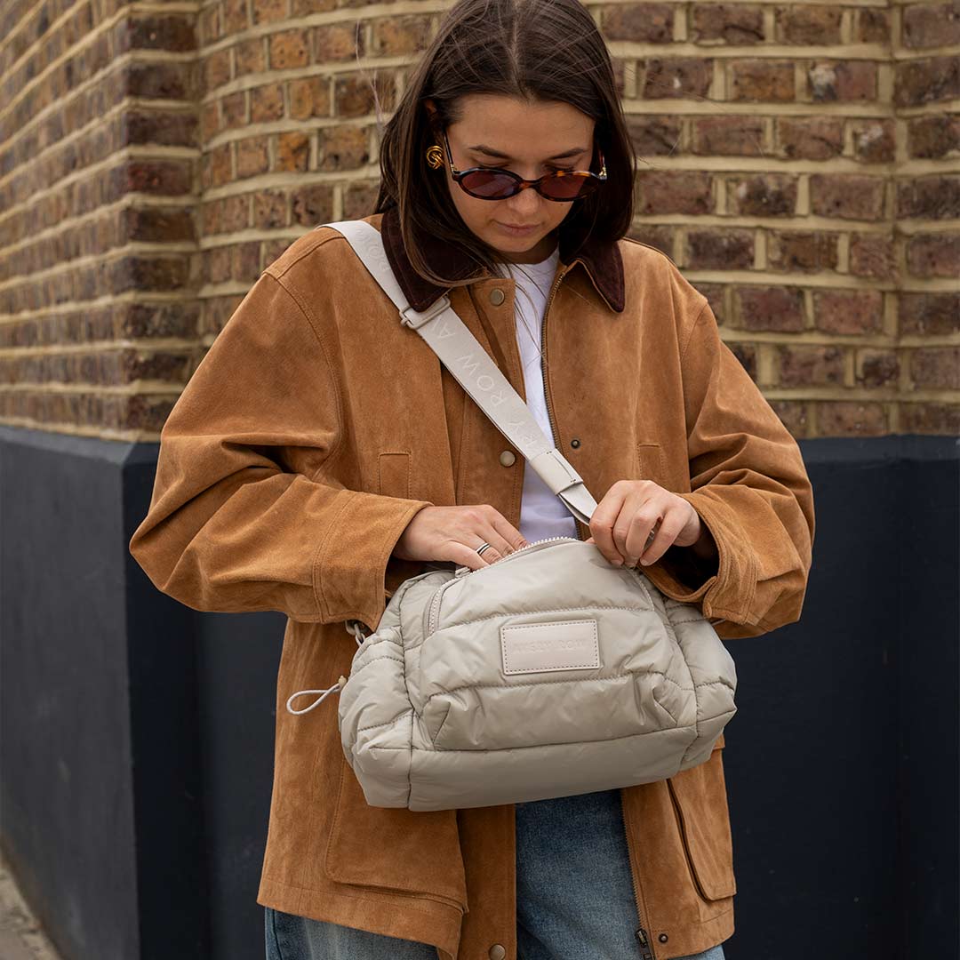 The Avery Row Pram Organiser Bag is a stylish and sustainable stroller companion for parents on the go. Made from recycled, water-resistant materials with a quilted finish, this compact yet spacious bag keeps essentials neatly organised. With handy compartments, outer bottle pockets, and the option to wear it crossbody, it’s designed to adapt from buggy walks to everyday outings with ease.