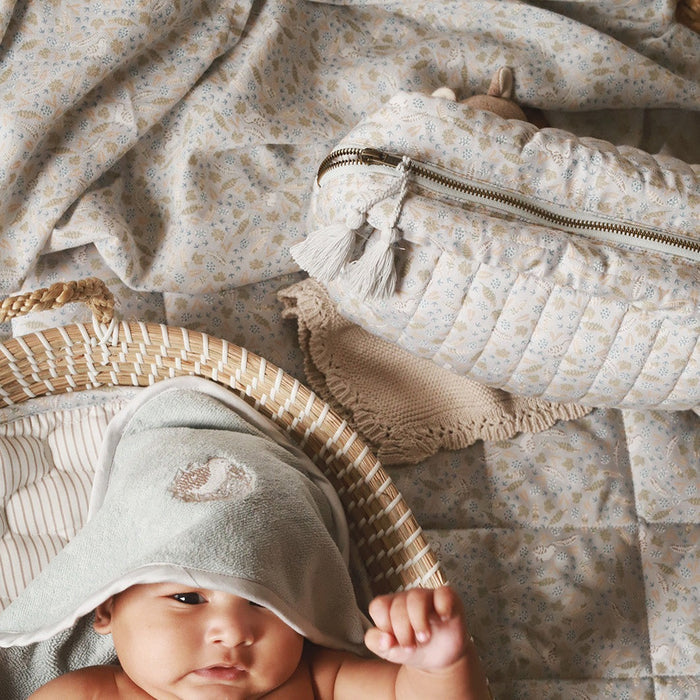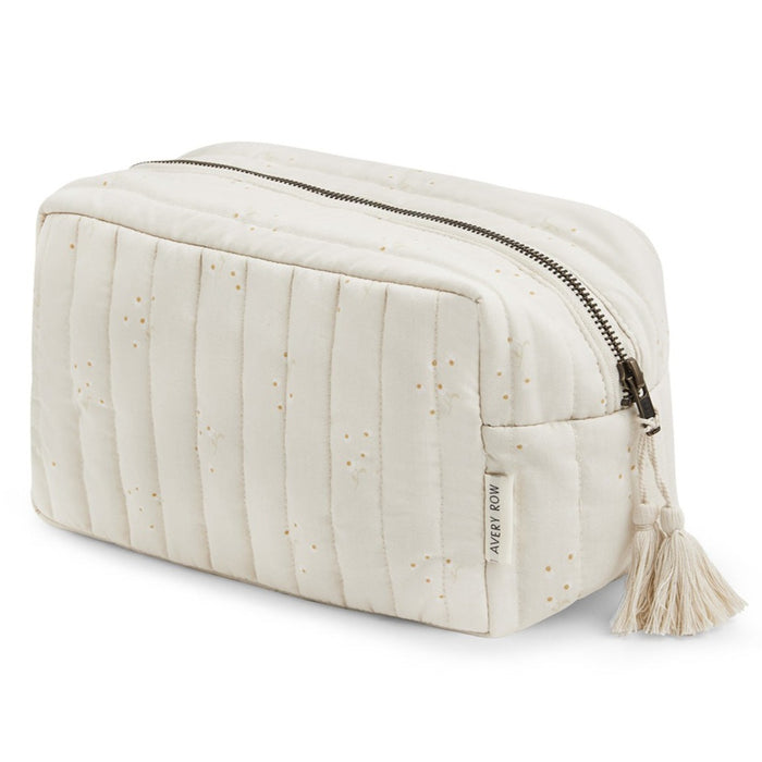 This organic cotton quilted wash bag comes in our unique prints with a stylish tassel. A beautifully designed, practical pouch for parent or baby to store your toiletries, make up, and more or nappies and creams. It also has a handy elasticised pocket inside. The product that is for parent and baby and has an infinite number of uses.