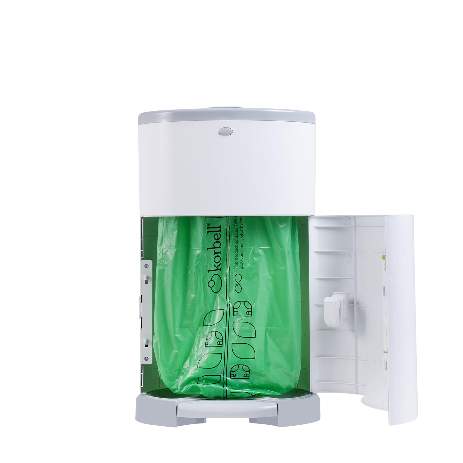 Keep a lid on bad smells with our hands-free Korbell Nappy Bin; the most hygienic way to dispose of dirty nappies. A clever refill system makes it easy to change when the bin is full.