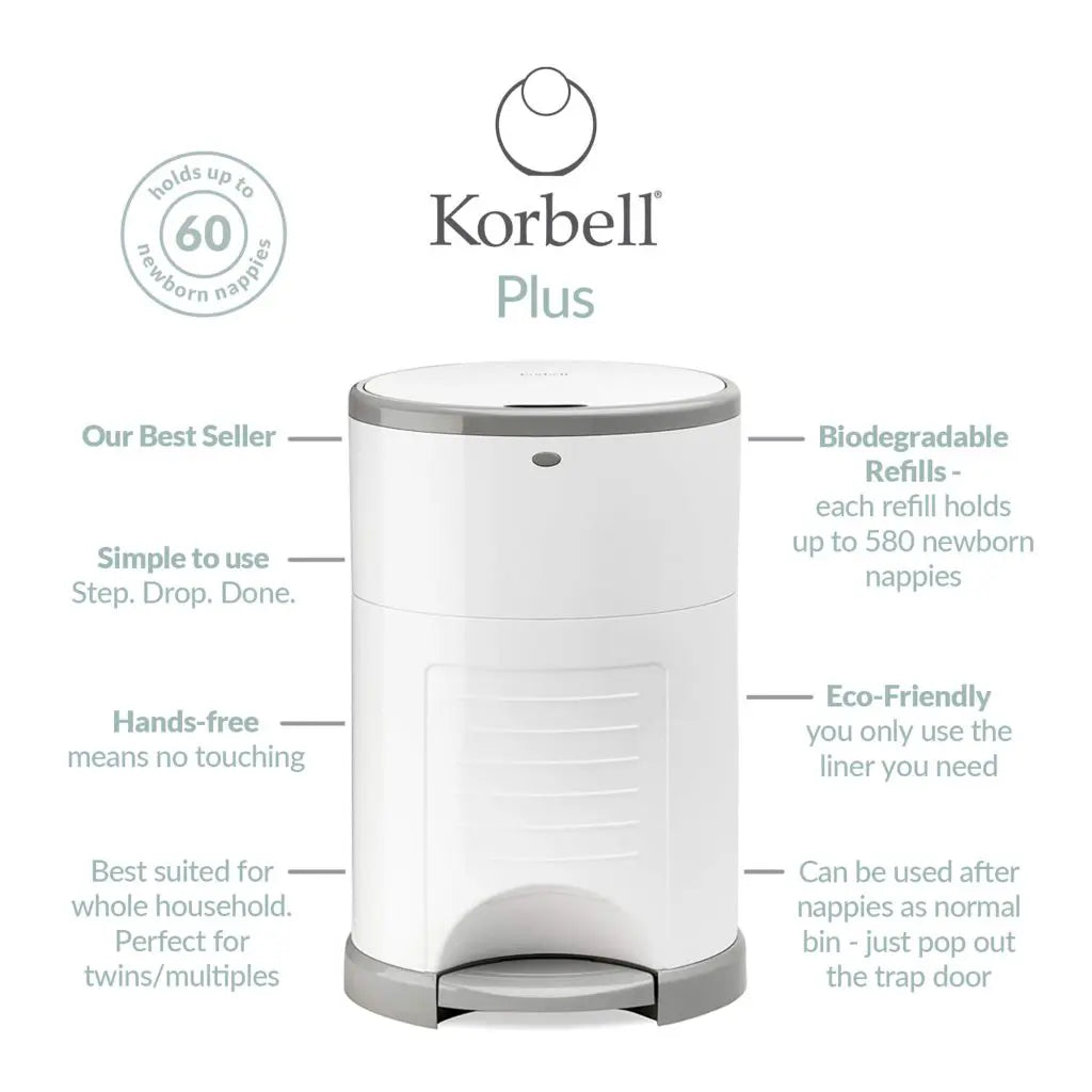 Keep a lid on bad smells with our hands-free Korbell Nappy Bin; the most hygienic way to dispose of dirty nappies. A clever refill system makes it easy to change when the bin is full.