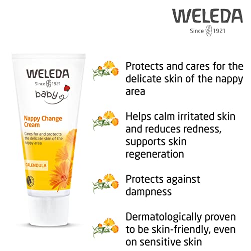 The Weleda Calendula Nappy Change Cream protects the delicate skin of the nappy area. It helps protect and nourish the skin, supporting its natural functions. Skin friendly lanolin and zinc oxide provide a protective barrier against excessive moisture. Almond oil and precious organic calendula and chamomile extracts are gently smooth and soften the skin. Specially formulated to care for baby and infant skin.