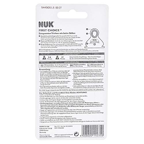 These Latex teats are suitable for use with NUK First Choice Bottles which have a wide neck. If you have the standard, narrow neck NUK Classic bottles you will need the standard teats. The First Choice+ Teats replicate a mother's nipple during breastfeeding. The extra soft tip easily takes on different shapes whilst also promoting the development of the mouth, lips and tongue. The orthodontic NUK shape, combined with the NUK First Choice extra wide lip support, makes it easier to alternate between breast and bottle feeding. The improved Anti Colic Air System minimises infant colic caused by the harmful swallowing of air. Clinically proven for optimal combination of breast and bottle feeding.
