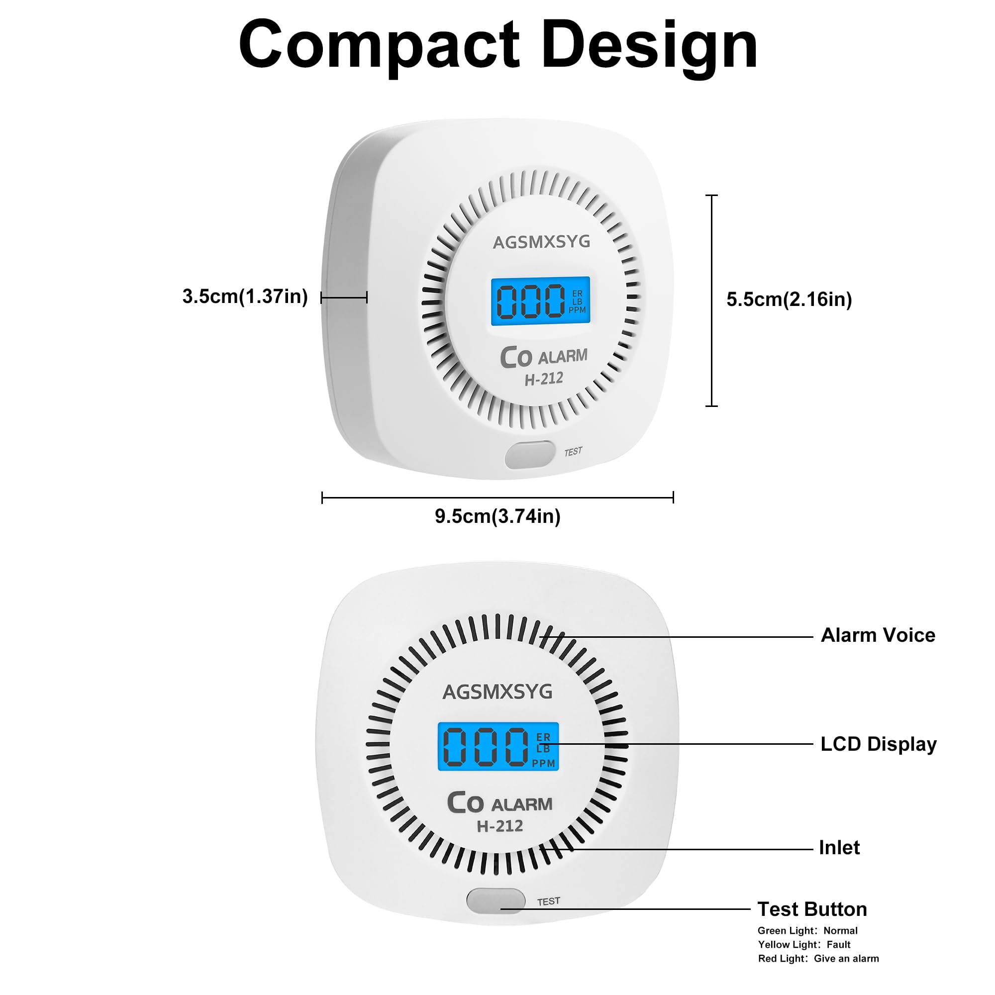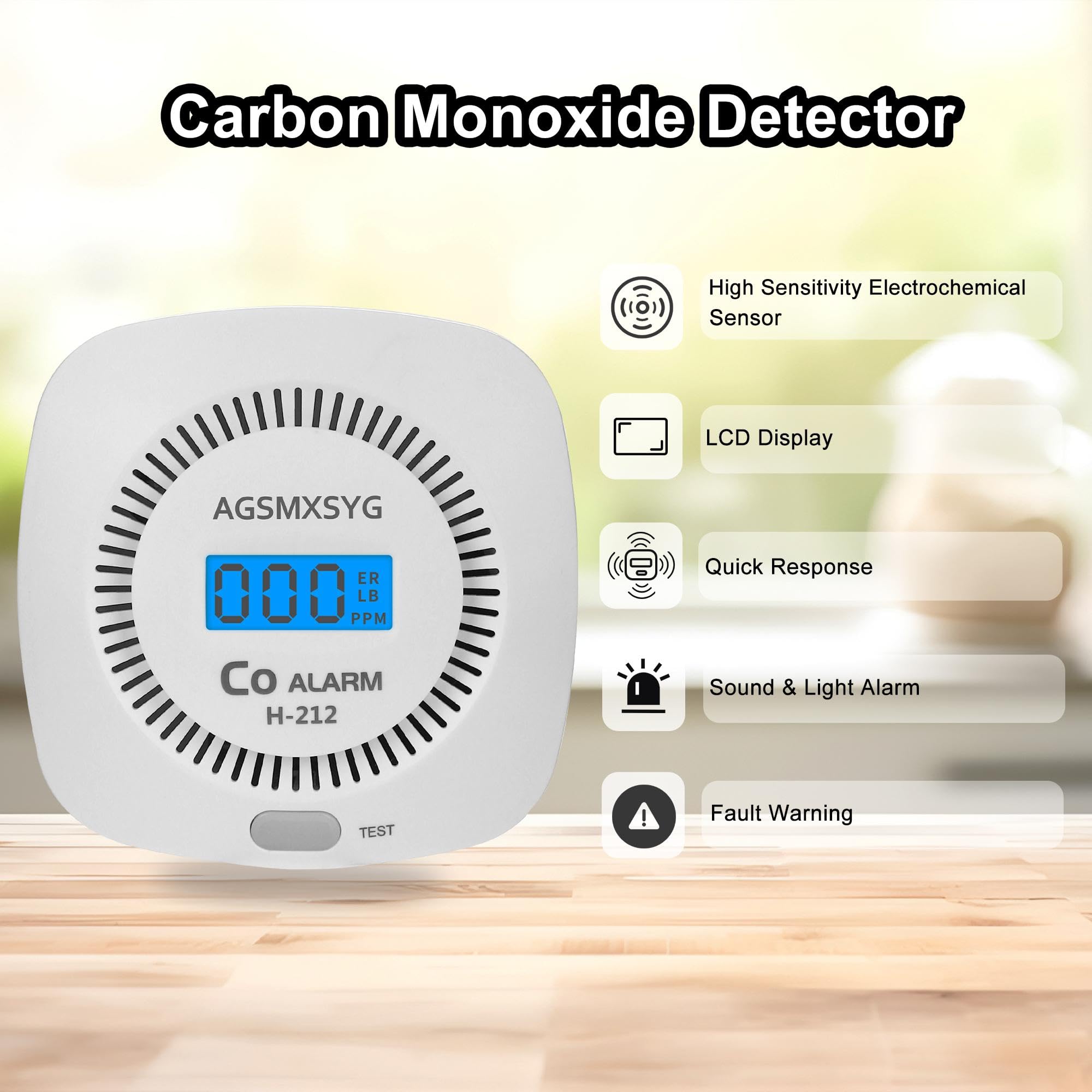 3 Packs Carbon Monoxide Detector - AGSMXSYG Carbon Monoxide Alarms Battery Powered with Digital Display
