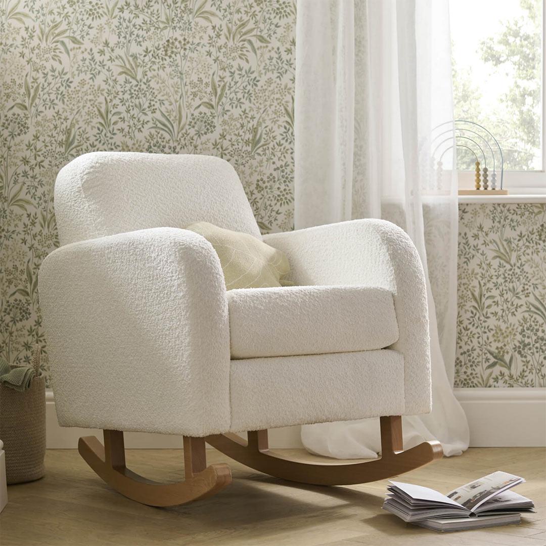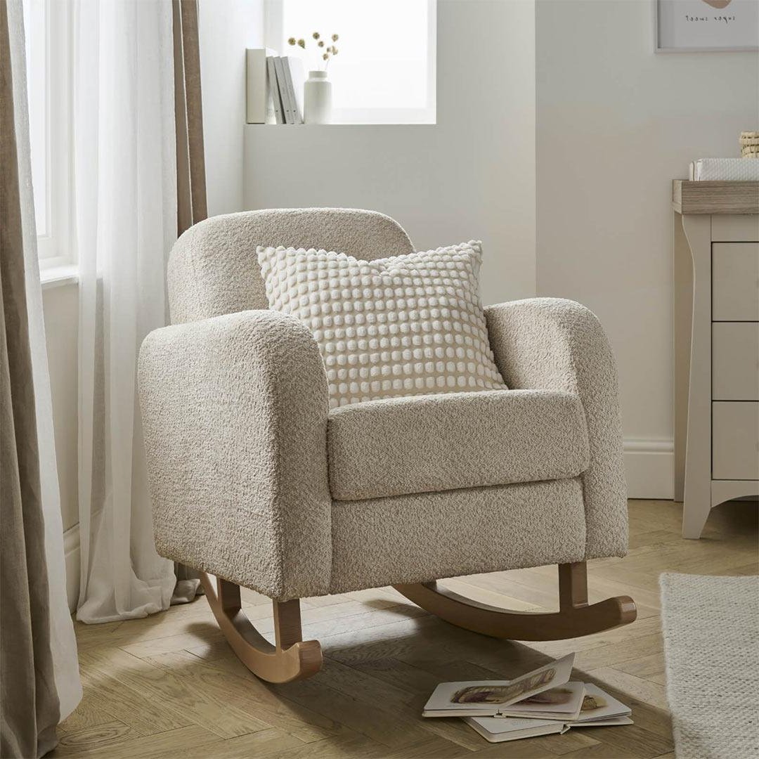 The CuddleCo Etta Nursing Chair is a must-have for a cosy nursery corner. This beautiful rocking nursing chair features a soft-to-the-touch, boucle finish, perfect for a gender-neutral nursery.