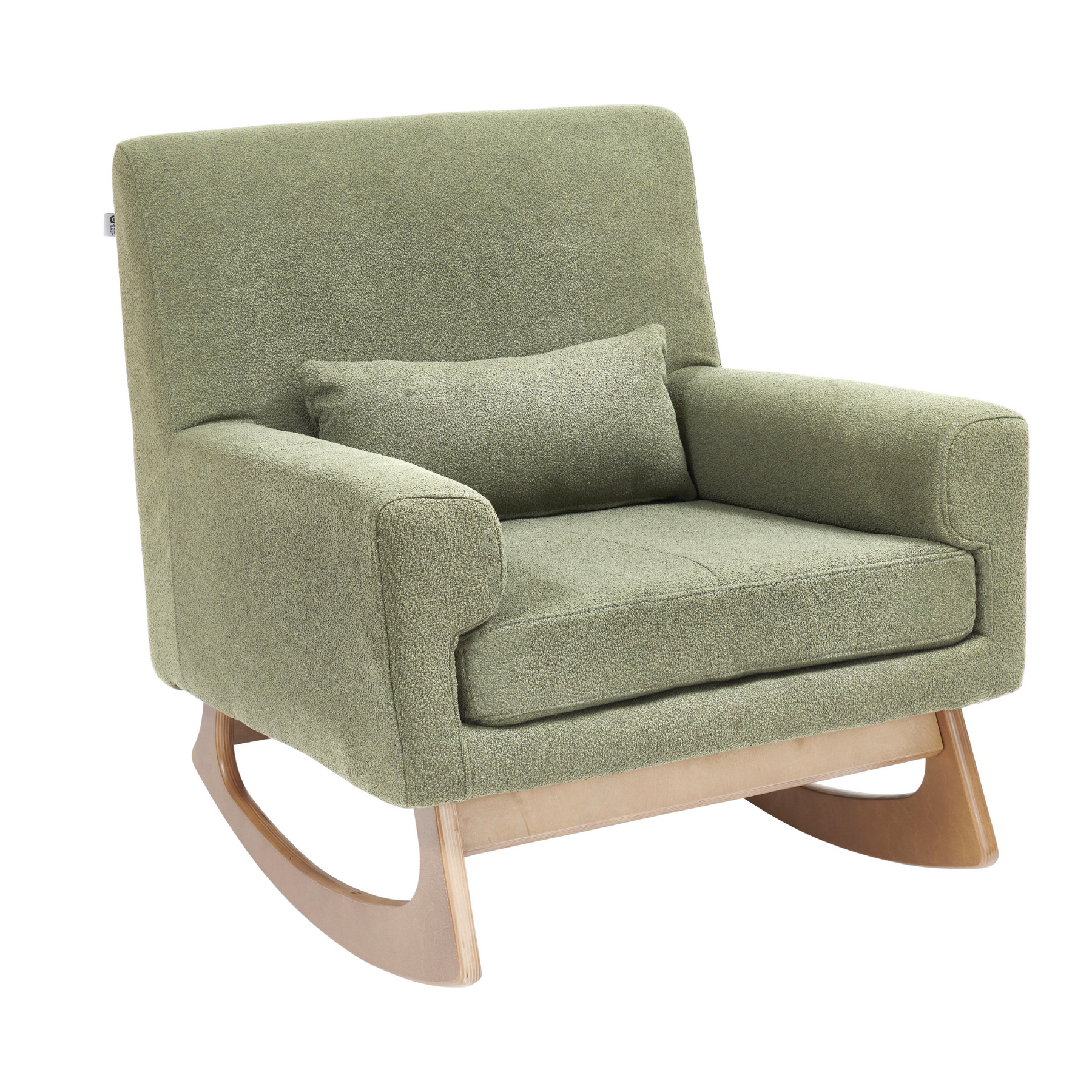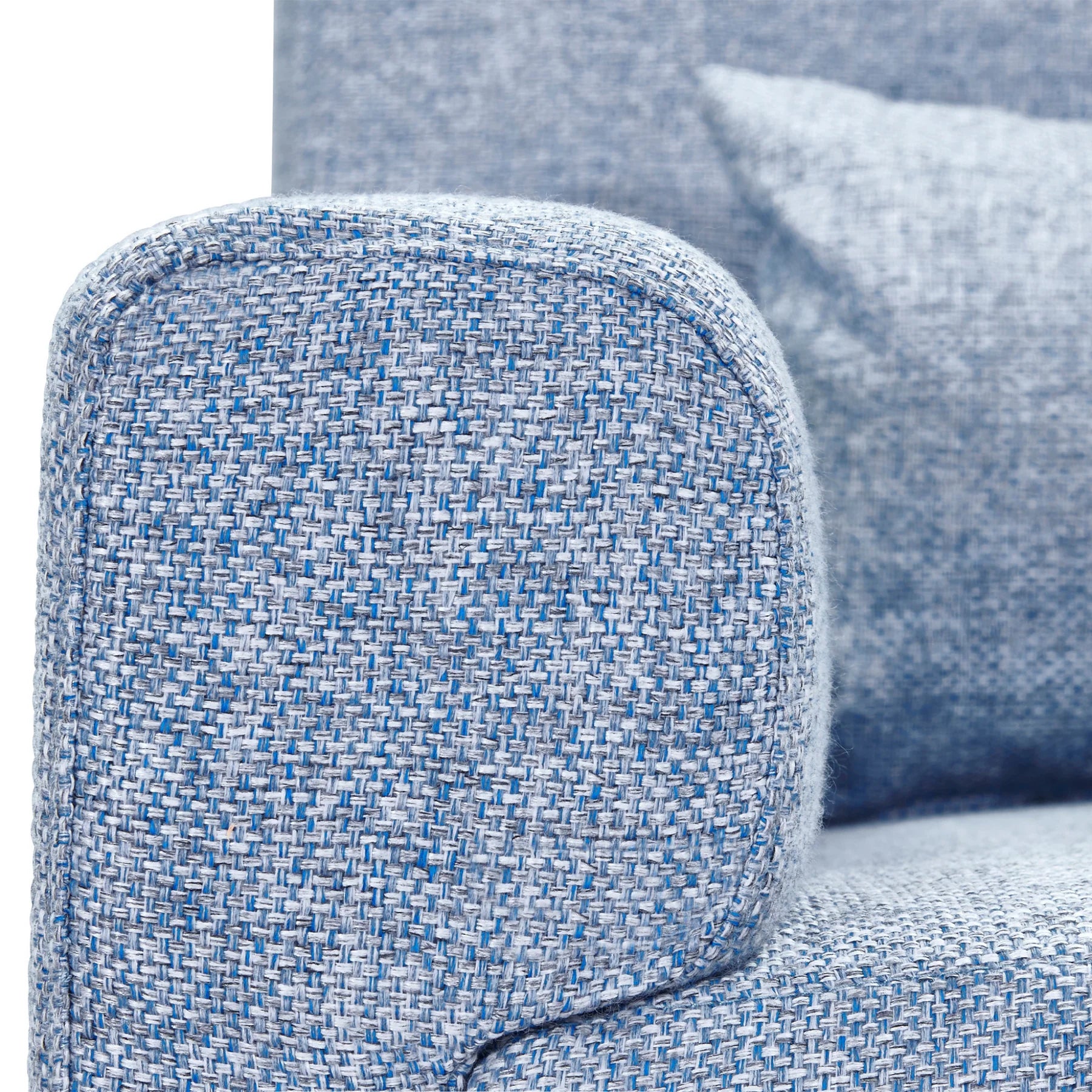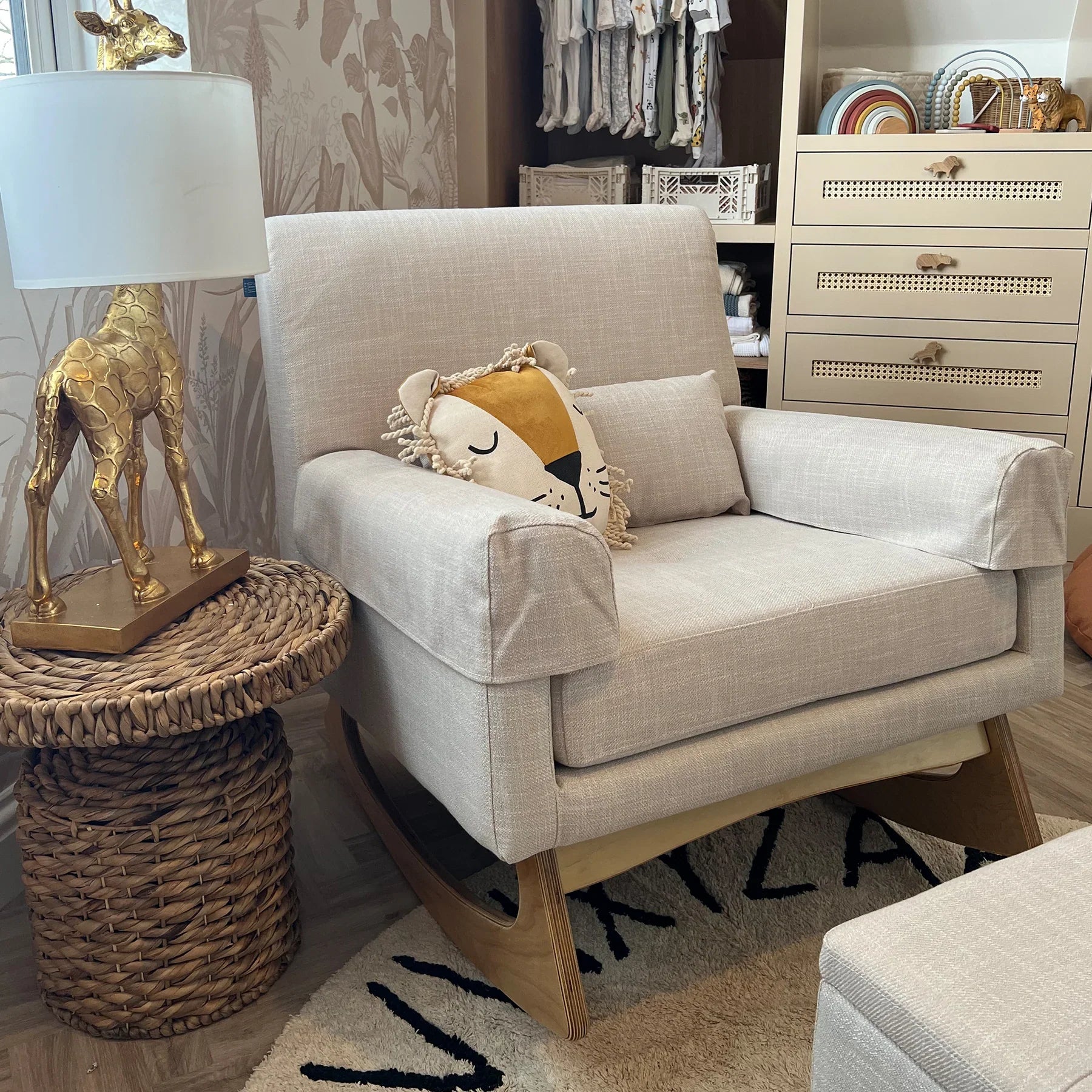 Our Tweed Collection nursing chairs feature a two-tone weave giving the piece texture & depth, natural birch wood legs offering a smooth rocking motion and allow easy transition from seated to standing with babe in arms.