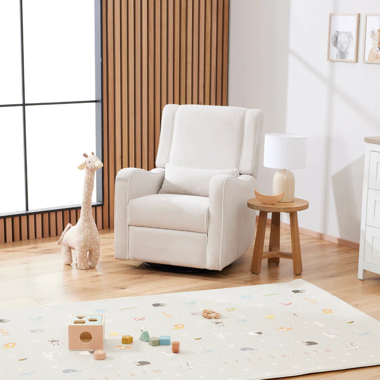 With a swivel base and full recline feature, the Willow Nursery Chair will certainly get you through those long nights.