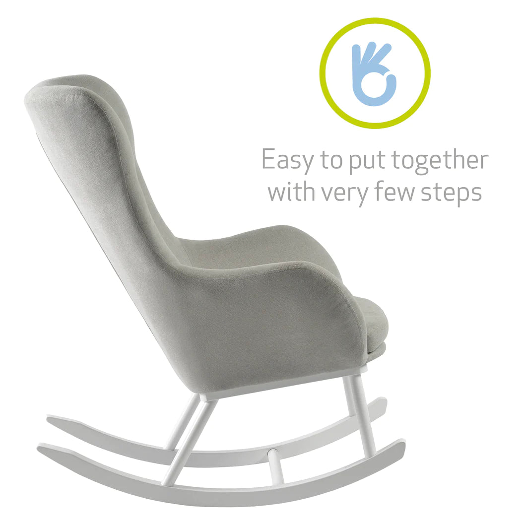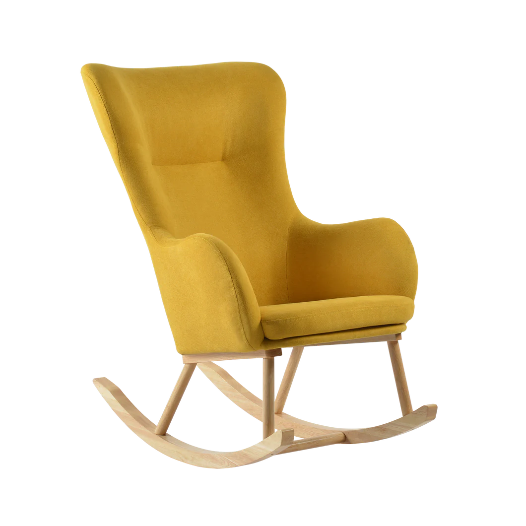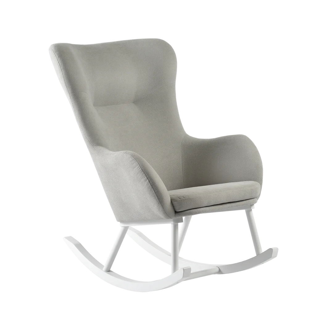 The Paxton is the newest addition to the Kub Rocking Chair range. A stylish and contemporary nursing chair featuring solid wood leg design for style and durability, making it ideal for both nurseries and living rooms. The tilted and padded back design ensures that you and your baby are comfortable whilst you are feeding or relaxing with them and enjoying the smooth rocking motion. The tall backrest gives you full back support. This modern design is certain to add character to any nursery, with three colour options: light grey with white wood, warm grey with white wood, mustard yellow with light oak wood.