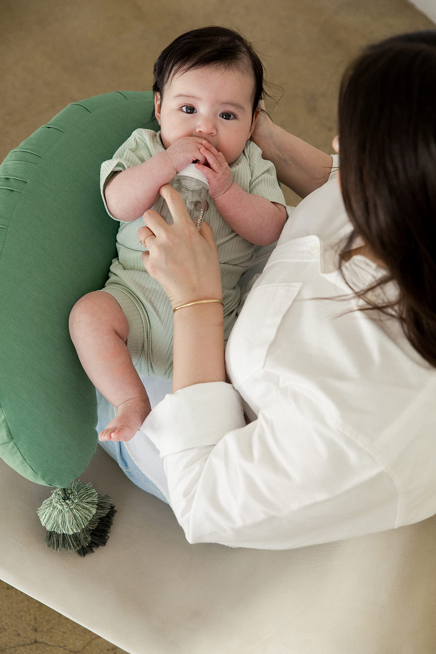 The Essential Pillow for Feeding Time Product Description: This stylish accent cushion is actually a smartly designed nursing pillow in disguise. Baby bonding time gets taken to new heights with this cradling pillow that curves around the body to support baby or mom’s arms during nursing sessions. You won’t mind leaving this chic nursing pillow out on the couch when company stops by.