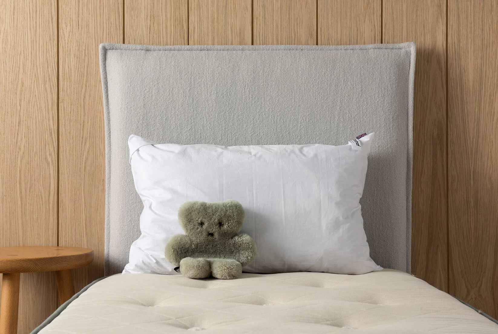 A supremely breathable wool-stuffed pillow.. This soft and comfortable Wool Pillow is stuffed with generous helpings of our organic lambswool, sourced from farms local to us in the South West of England. The Wool Pillow has a firmer feel compared to our down pillows but is still gloriously comfortable. Featuring a 100% cotton cambric case, hand-stuffed in our Devon workshop and zip-sealed.. Our wool is temperature regulating, hypoallergenic and anti-dust mite - making it the ideal first pillow for your baby.