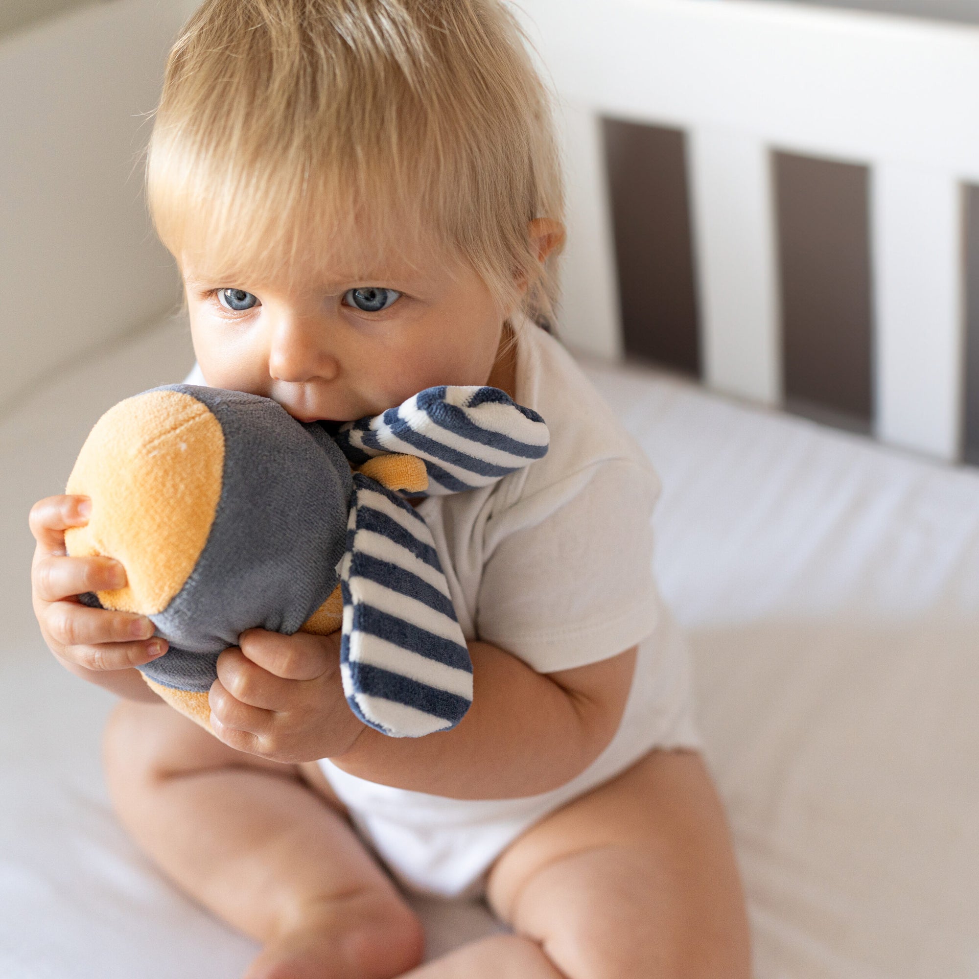 100% organic and natural fabrics inside and out. Rattle and crinkle noises and attach to buggies when on the go. As we are super strict about using only 100% natural and biodegradable fabrics, our toys may come with small inconsistencies, giving each a unique and lovable character. It’s harder to predict the stretch and the cutting precision when using natural fabrics over polyester, but we’ll take uniqueness over polyester any day.