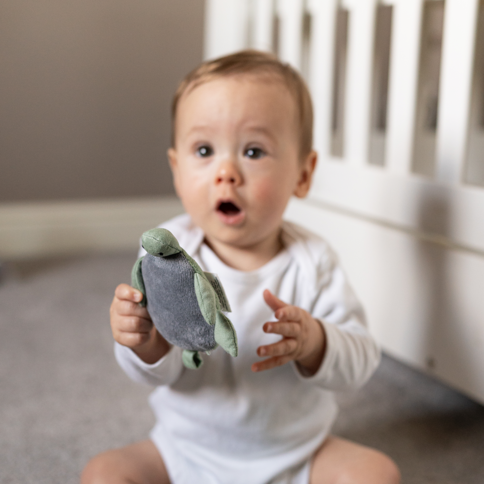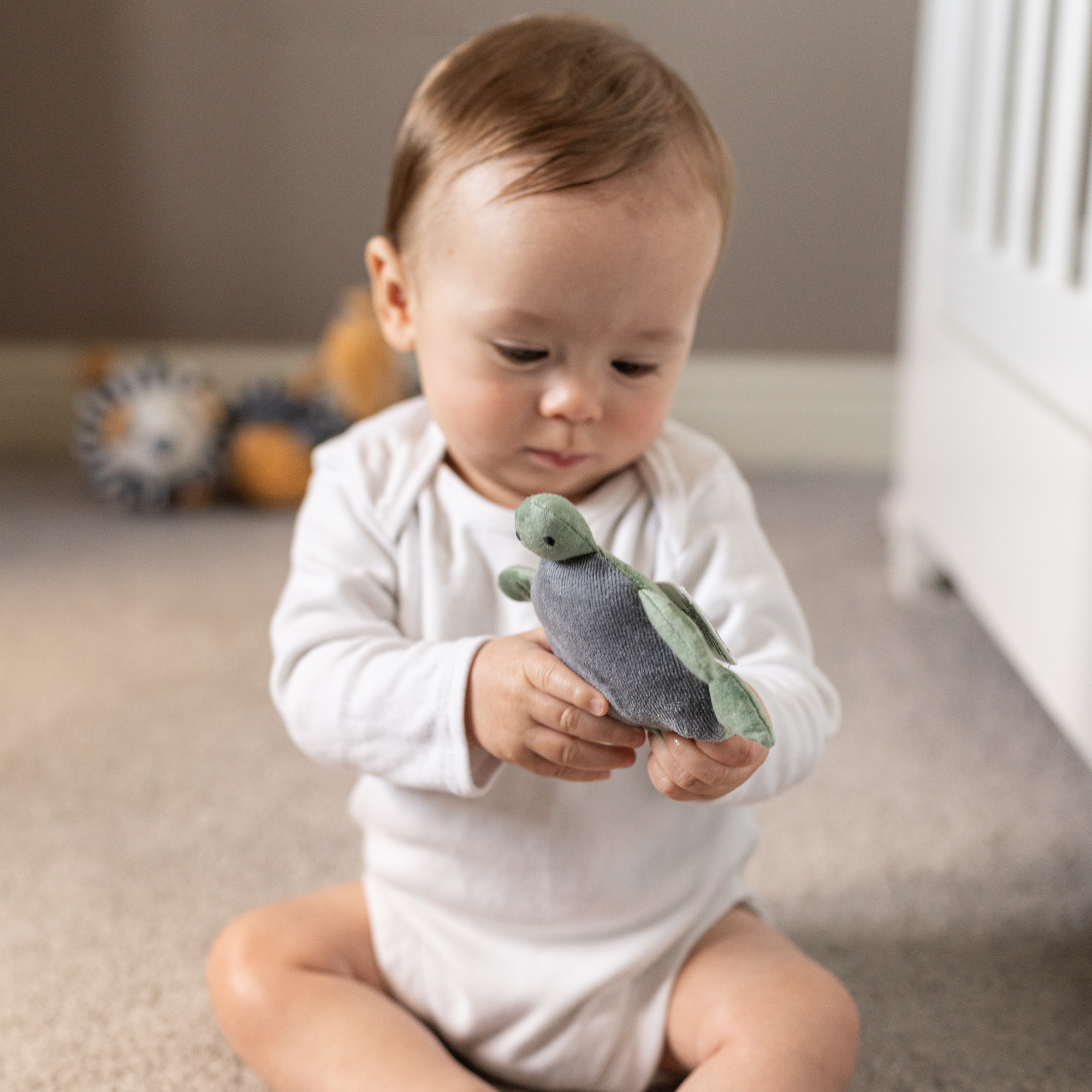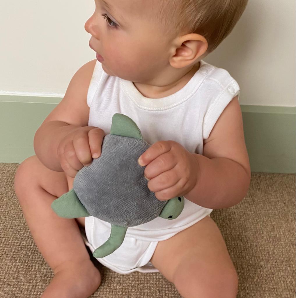100% organic and natural fabrics inside and out. Rattle noises and attach to buggies when on the go. These toys may come with small inconsistencies, giving each a unique and lovable character. It’s harder to predict the stretch and the cutting precision when using natural fabrics over polyester, but we’ll take uniqueness over polyester any day.