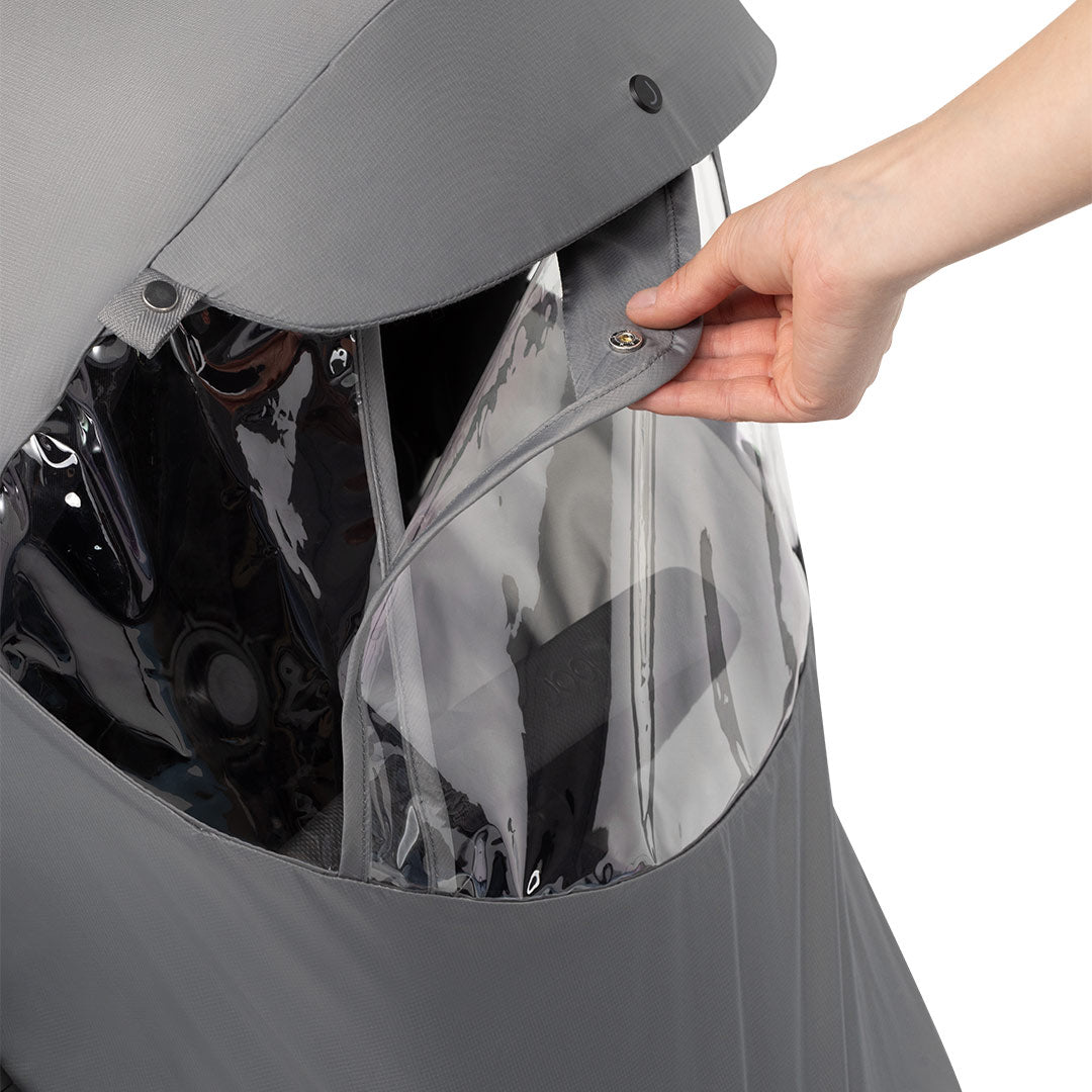 The Joolz Hub2 Raincover fits perfectly on either the seat or the cot, keeping your little one and your pushchair nice and dry. Its transparent window lets your baby look out at the world, and there’s a little opening so you can hand them a toy or a snack for ultimate entertainment. The cover has a water-repellent coating and dries incredibly quickly, so you can fold it up and stow it away soon after the rain stops.