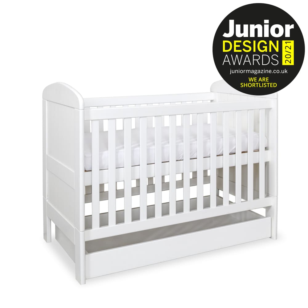 Our Mia cotbed is the big sister of our more compact cotbed, the Mini Mia, which was awarded Bronze by the Junior Design Awards 2020/21 for 'Best Cot/Cotbed Design'. They are the same in every way except size - and we would recommend the Mia if you have a regular sized nursery and the Mini Mia if your nursery is more compact.