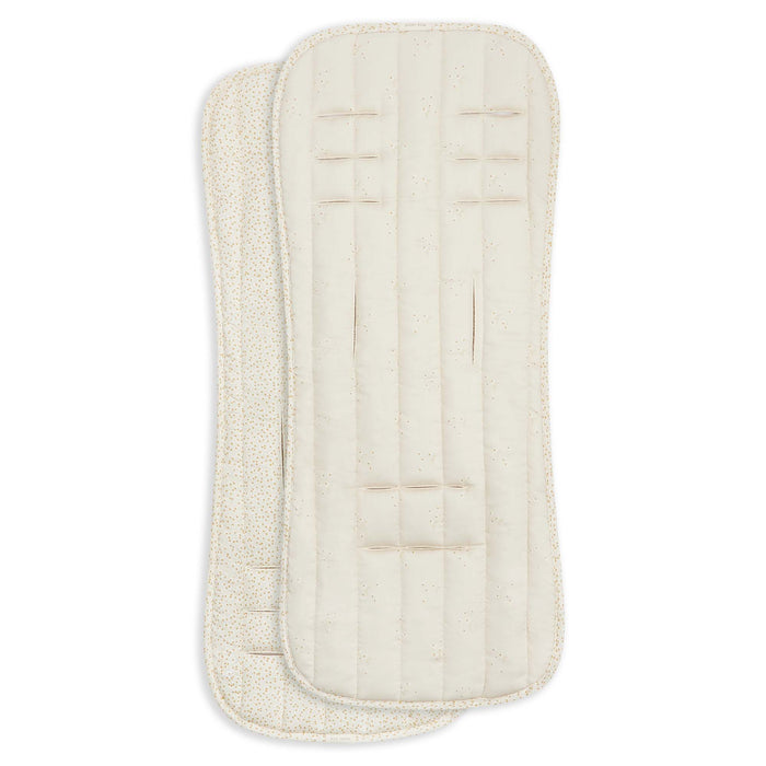 Our Pram liners are perfect for catching crumbs and creating a comfy, cosy, stylish pram. Designed to be a universal fit for all prams, our liners feature multiple slots to ensure a perfect fit for any model. These reversible pram liners are made from organic cotton sateen and organic dyes with a recycled polyester filling.