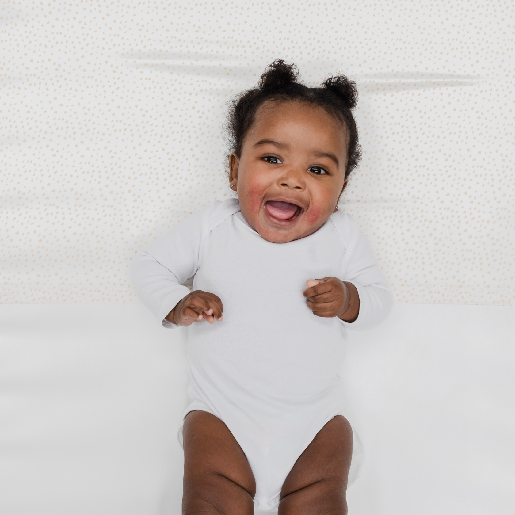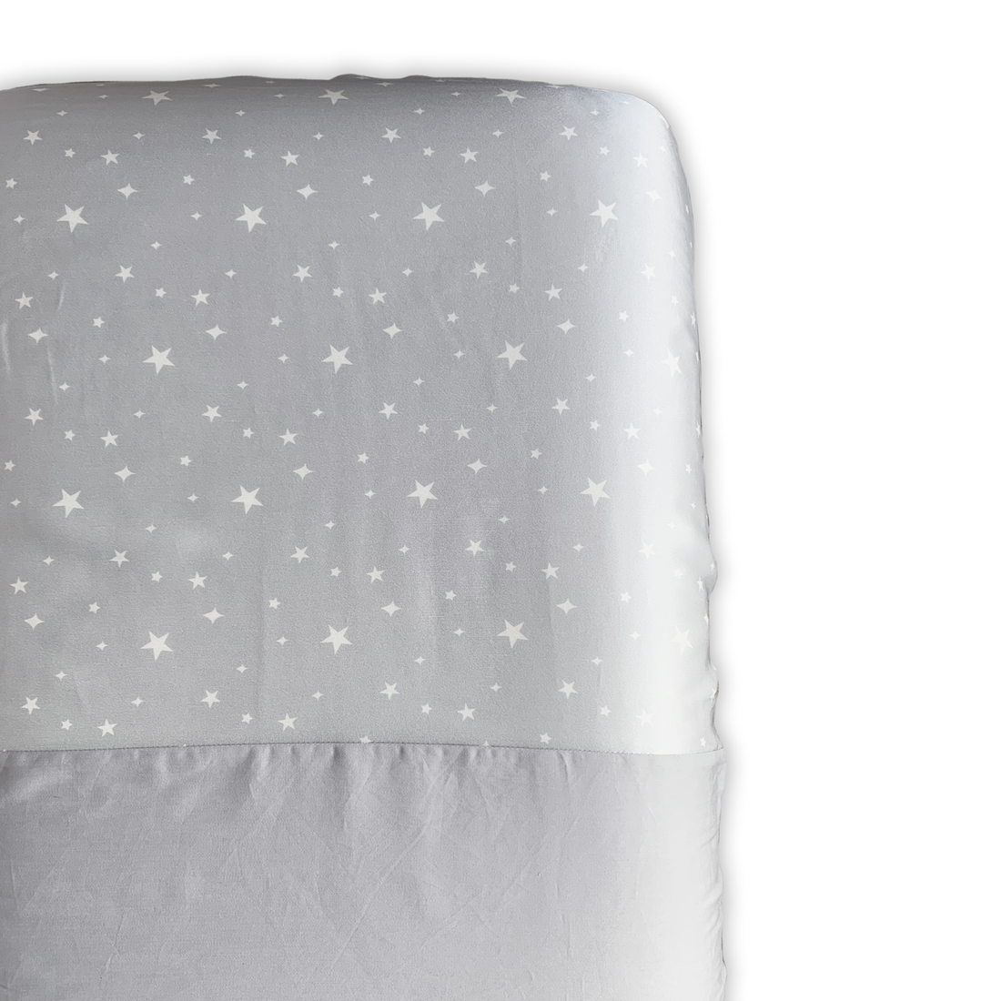 Silky Tots Half Silk Cot Sheets offer the protections and natural comfort of 100% natural mulberry silk where your little one needs it most.